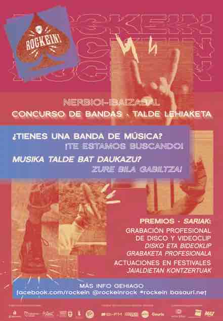 Por sexto año consecutivo el Ayuntamiento de Basauri, con la colaboración de los Ayuntamientos de Arrigorriaga, Galdakao y Laudio, convoca el concurso musical Rockein!, dirigido a solistas y bandas de la Comunidad Autónoma Vasca y Navarra.
