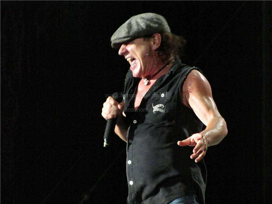 Rápidamente pasaríamos a los clásicos con “Hell Ain´t A Bad Place To Be” y provocar la mayor algarabía cuando nos recibió el famoso riff de “Back In Black”. Sin embargo, la banda volvió sin tardar demasiado a su nueva obra con “Big Jack”. Tal vez esto bajara un tanto la adrenalina de los presentes, pero también es muestra de que, pese a los rumores de que este concierto de fin de gira podría ser el último de la carrera del grupo, la banda sigue con ganas de presentar sus nuevas canciones. Eso es sinónimo de ilusión por lo que tienes entre manos en la actualidad a lo que hay que añadir que el estado de forma de la banda es espectacular. Sobre todo hay que destacar el sesentón Brian Johnson que se recorrió el escenario con total facilidad. La carrera que se echó para colgarse de la campana en “Hell´s Bells” creo que evita dudas sobre su estado físico. Y eso que este tema intocable de la discografía de la banda vino precedido ya de un buen tute con “Dirty Deeds Done Dirt Cheap”, “Shot Down In Flames” y “Thunderstruck” que ya nos habían metido de lleno en el corazón de la descarga. Sin dejar de lado un nuevo toque a su última referencia con el homónimo “Black Ice”, al que siguió un “The Jack” que lejos de embajonar los ánimos los subió, y de qué manera, gracias a las señoritas que enfocadas por las cámaras y viéndose en las pantallas del escenario decidieron mostrarnos sus encantos. No todas se atrevieron pero si hubo alguna que provocó a la parte masculina de la concurrencia. Finalmente, antes de que montáramos una orgía entre 40.000 personas fue Angus el que realizó su habitual streaptease mostrando el nombre de la banda en su trasero.