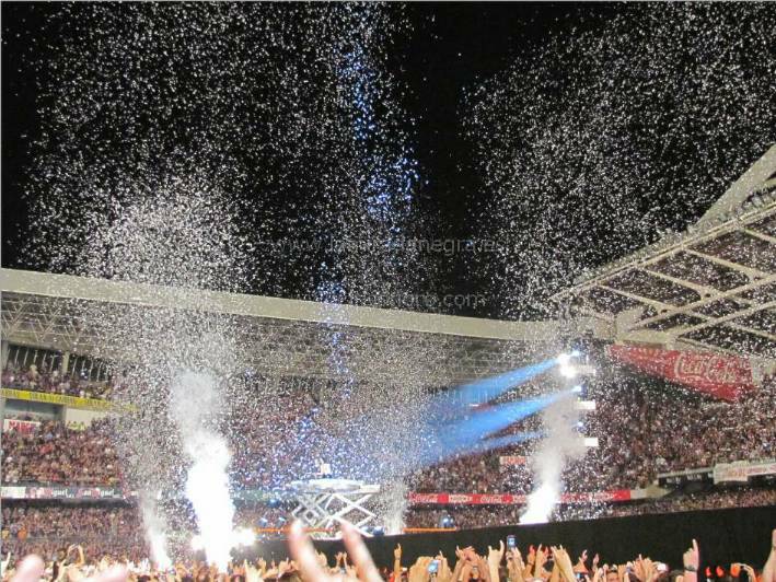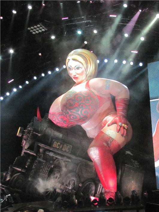 El repertorio de clásicos fue el esperado sin echar en falta apenas nada de lo que el grupo nos viene ofreciendo. “You Shook Me All Night Long” fue de los más coreados de la noche, pero yo me quedo con la fuerza del rock and roll de “Whole Lotta Rosie” con la aparición de la protagonista de este tema escrito en alguna ocasión por Bon Scott. Un gigante hinchable en forma de gorda mujer, que increíblemente seguía con su taconeo el ritmo de la canción. También me quedo como de lo mejor de la noche con “Let There Be Rock”, aunque el solo de Angus se me hizo un tanto largo y no dio tantas vueltas en el suelo de la plataforma central como en otras ocasiones, pero el tema en sí creo que es de los mayores himnos del rock de todos los tiempos y sigue dejando impresionado cuando a cada paso se encienden los focos y van sonando la guitarra, la batería y esta gran banda de rock en general.