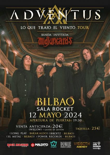 Cambio de sala para Adventus en Bilbao. Finalmente la presentación de «Lo Que Trajo El Viento», ultimo disco de la banda capitaneada por Manuel Ramil, tendrá lugar en la bilbaina sala Rocket el próximo domingo 12 de mayo.