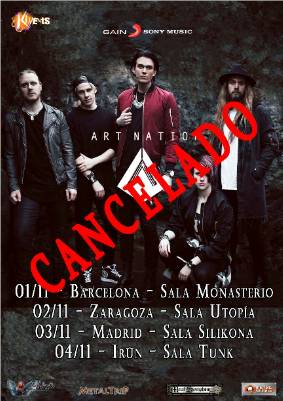 Tras la salida de varios miembros de Art Nation, ha sido imposible llegar a un acuerdo entre la banda y el agente organizador de la gira europea, lo que ha desembocado en su cancelación, al descolgarse el vocalista de la banda, Alexander Strandell, con unas nuevas condiciones a las firmadas originalmente, totalmente inaceptables, no respetando el contrato firmado en primera instancia. Desde Kivents no hemos aceptado esta modificación sustancial por parte del Señor Strandell, por lo que hemos decidido cancelar la gira, al no respetar el acuerdo original, firmado por su propio puño y letra.