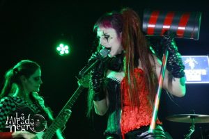 Los vizcaínos se metieron al personal en el bolsillo desde el principio, con Malmudena acaparando las miradas. Todos salen maquilladlos cuidando la imagen, pero no cabe duda de que la frontwoman acapara para sí todo el escenario desde que arranca la descarga con “Fighting Desire” buscando a esa concurrencia a través de unas curiosas gafas a juego con su imagen de Harley Quinn que le viene que ni pintada para decir eso de que “Yo No Quiero Ser” (tu muñeca). Porque actitud le sobra a esta villana como para imponer, cargando con ese enorme mazo a hombros o no.