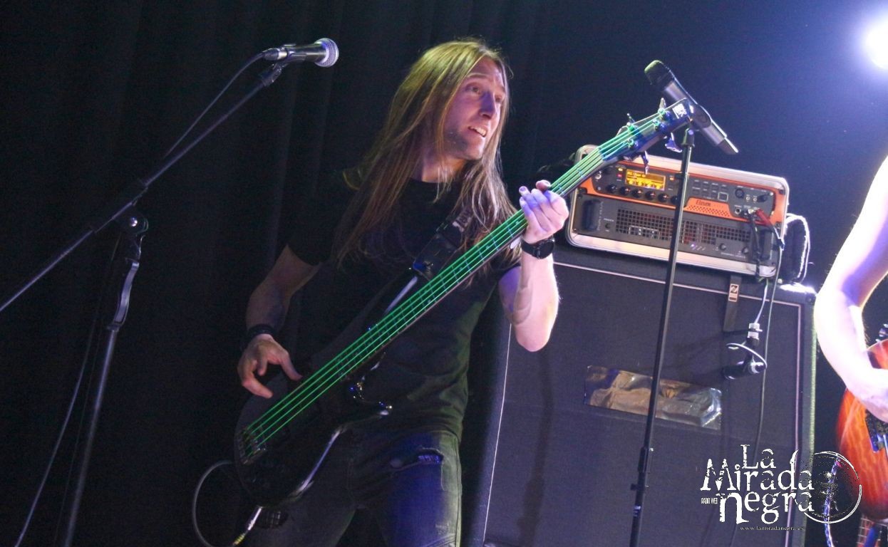 Así que la banda queda reconstituida como sexteto después de un tiempo funcionando con dos voces femeninas, recayendo ahora ese papel exclusivamente en Sonia Jiménez, jugando un papel fundamental en conjunción con la masculina de Alejandro Leonidas, también haciéndose cargo de la guitarra rítmica. Pero si de destacar el papel de mujeres en el metal se trata en esta banda se deja notar sobremanera Patri Grief que no solo porta una guitarra chulísima en forma de hacha, es que aparte de ser la ideóloga del mundo de Norwald, lleva el timón de la banda en escena, con una aportación enorme a la banda.