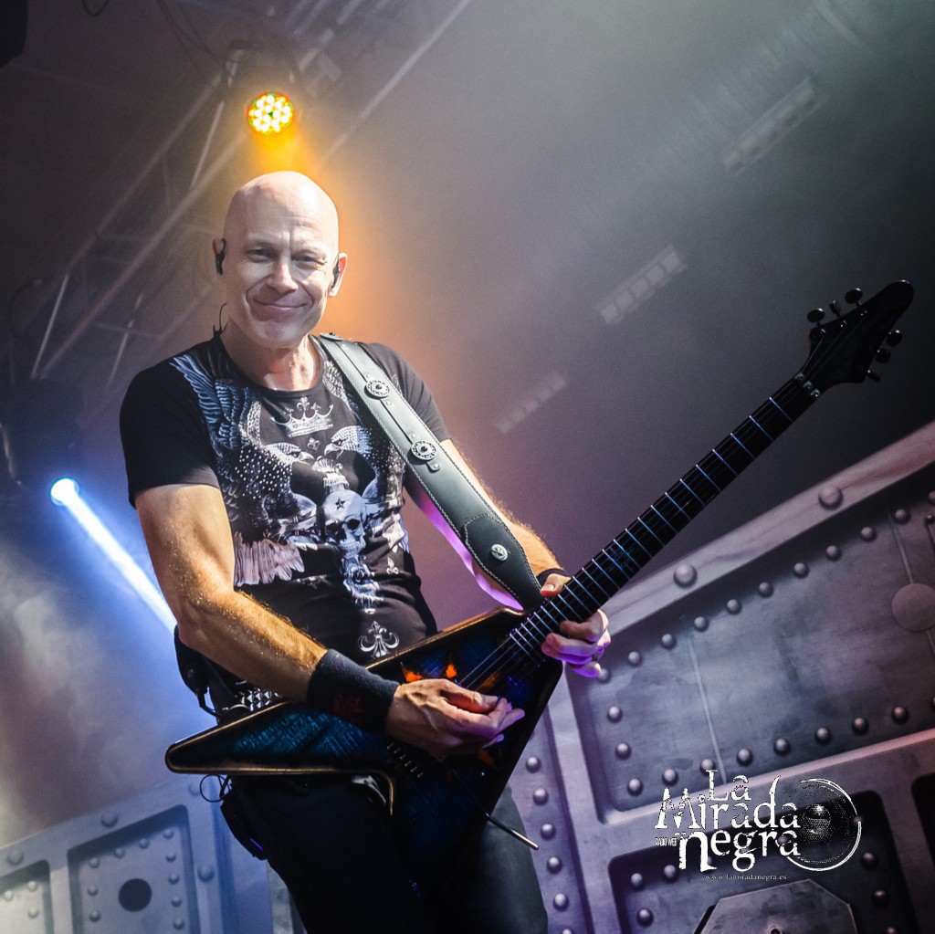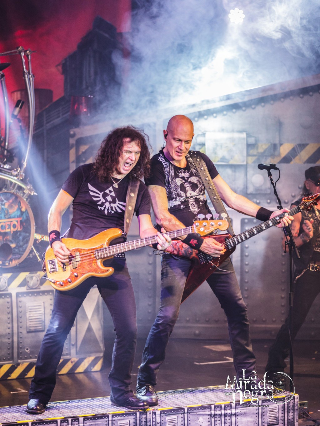 Sorprendió “Objection Overruled”, homónimo de un disco no tan reconocido editado ya en los 90 y que sirvió para ver un duelo entre Petar Baltes con su bajo y Wolf Hoffmann con la guitarra. “Pandemic” fue otra pincelada en defensa de su reciente legado, antes de que esa musiquilla por todos conocida comenzara a sonar previa al ataque veloz y brutal de “Fast As A Shark”, cantada por Mark Tornillo mejor de lo que le recuerdo en pasadas oportunidades. Siempre me ha parecido el tema que más se le ha resistido, pero es un clásico que nunca puede faltar en un concierto de la banda.