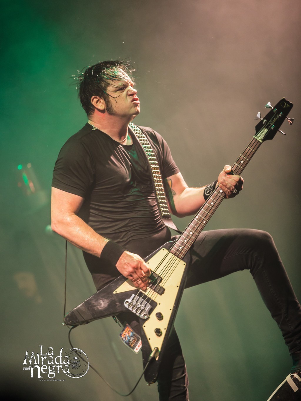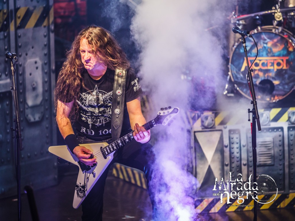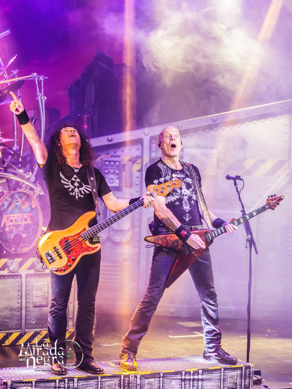 Lejos de sorprender el lleno que Accept cosechó este domingo a la noche en Bilbao, deberíamos decir que menos mal que unos gigantes como ellos consiguen lo que muy pocas bandas en la actualidad. Generar la expectación merecida. No es sencillo en los tiempos que corren, menos cuando te has dejado ver habitualmente por estos lares y menos cuando tu cantante clásico ya no está en la banda. Cierto que este último punto Accept lo superaron hace ya unos cuantos años. En concreto desde el primer momento en que se dejaron ver con Mark Tornillo sobre los escenarios. Siempre habrá opiniones para todos los gustos, pero objetivamente hablando Accept han sabido recuperarse muy bien de lo que para muchos es una herida insalvable, la marcha de un cantante carismático como pocos que por mucho que haya pasado con un repertorio de la que fue su banda madre en un par de ocasiones jamás podrá saciar a los seguidores de la maquinaria alemana como lo hacen Wolf Hoffmann y sus chicos. Ese sonido lo tienen patentado el guitarrista y el bajista Peter Baltes, acompañados por un impresionante Christopehe Williams en la batería y un Uwe Lulis que no es Herman Frank, al cual sigo echando de menos, pero que se le vio más acoplado en la banda que en la última oportunidad en que pasaron por aquí. No obstante, un tanto tapado por la primera línea de fuego marcada por Hoffmann, Baltes y Tornillo.