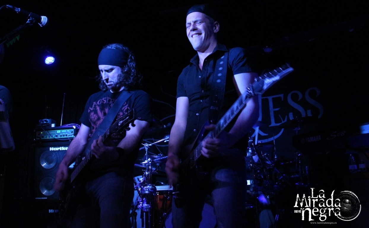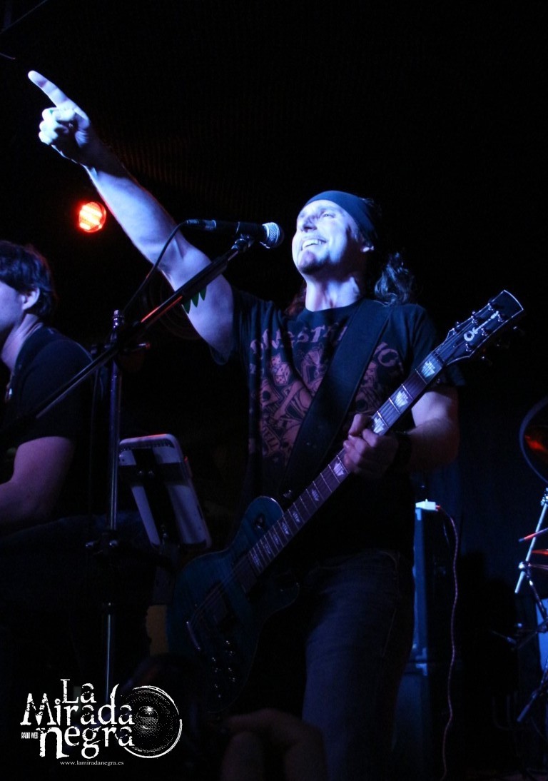 Tras unos minutos de incertidumbre que hicieron sudar a la banda y sobre todo a Igor, con un problema con la pedalera de su guitarra que retrasó algunos minutos el inicio de la descarga, la banda salió a por todas, de nuevo con David haciéndose cargo de la segunda guitarra además de cantar, recordemos que en su presentación de disco en Bilbao se vieron ayudados por Jagoba Ormaetxea dejando libre con el micro al vocalista de la banda. No sé muy bien por qué, pero me gusta más cómo suena la banda y cómo viste en escena de esta manera pese a la gran labor de Jagoba en aquel concierto. Incluso veo mucho más cómodo a David en el escenario, sin por ello esconderse, ya que no deja de interactuar con la concurrencia.