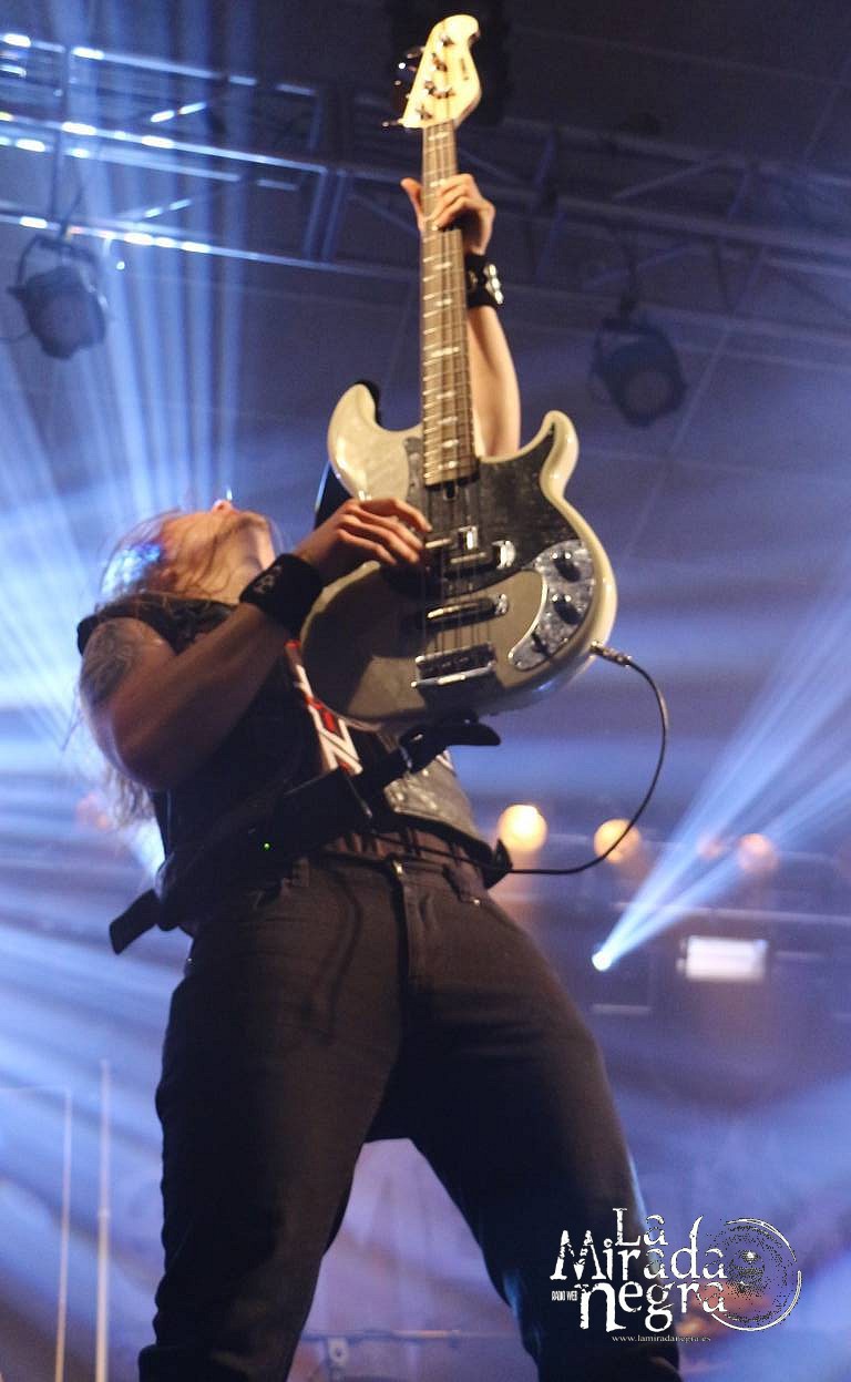 El vocalista aún se metió más al personal en el bolsillo con un eskerrik asko que parecía salir de lo más profundo de una caverna. De ella sacó también en un español algo defectuoso una bienvenida a su fiesta vikinga. Y la banda no daría excesiva tregua entre los temas, con “Live For The Kill” o “Free Will Sacrifice” continuando la descarga con un gran nivel musical y una entrega del personal incesante.