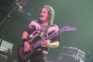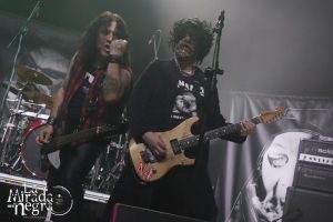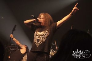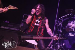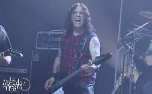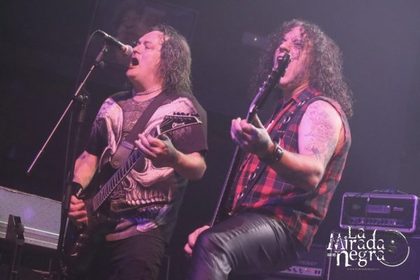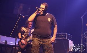 Porque se llevó el mayor tiempo el homónimo debut, con la banda ofreciendo en este primer tramo temas que siguen conservando toda la mala hostia de antaño como “Voy A Disparar”, “Legado Criminal”, “Distorsión TV” o “No Hay Más”. No deja de ser cierto que se nota en la banda esa falta de rodaje de los grupos que giran de forma habitual. Creo que comprensible. Se puede pedir menos parón entre temas, por ejemplo, para que el concierto sea más intenso, algo que le viene muy bien a su estilo, lo cual dejaría menos tiempo a Carlos para cagarse en dios, algo que hizo en tal cantidad de ocasiones que no me extrañaría que fuera de record en una actuación. El vocalista fue el vivo ejemplo del reencuentro con viejas sensaciones, saludando entre los asistentes a amigos, recordando a los que no están y mandando un mensaje de fuerza a quien este pasando por algún problema de salud.