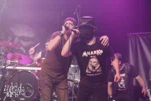 De “Degeneración X” se quedaron solo con “Muerto Perfecto- Fin De Sed” e “Insectofobia” y de su tercer disco “La Marcha De Los Muñecos Egocéntricos” tendríamos “Shock”, “Agonizo” y “Ahora No”. Entre clásicos “Los Nuevos Violentos” dejó claro que encaja plenamente con el espíritu de Anarko, tema interpretado, al igual que vimos en su videoclip, con Arbi enmascarado y con Edu y Mario a la sazón en la batería. Labor que compartirían de ahí en adelante con un último tramo en el que se saltaron el orden cronológico para ofrecernos algunos de sus temas mas impactantes, con Eder de Sanngre cantando en “Bien Machaca Bien”.