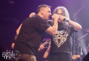 “Escapar” dio carpetazo a este largo tramo dedicado al debut de la banda, pasando a un momento muy especial con la entrada de Mario junto a Edu, que para eso había dos baterías en el escenario. Tras un duelo de lo mas amistoso entre ambos, con Mario muy emocionado y agradecido, pasamos a un nuevo tramo de la actuación dedicado a sus trabajos con Anarko.