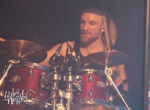 Impecable fue también la actuación en conjunto de la banda. La no presencia de Ramón deja todo el protagonismo como voz principal y frontman a un José Pardial que se ha erigido en uno de los mejores vocalista de heavy metal en habla hispana en la actualidad. El vocalista oficial de la banda se ha hecho con ese puesto con la seguridad que le da una portentosa voz que manejó a su antojo, tanto para llegar a los registros más limpios y sutiles como para rugir como un león cuando la situación lo requería. Además, transmitió muy buen rollo con sus compañeros, con algún momento hasta cómico con un Bjørn Mendizabal, que tras la batería es una maquina precisa y consistente que parece disfrutar como un niño en todo momento. Un buen ambiente que rodea al líder Alberto Rionda, siempre concentrado, pero que también aceptaba de buena gana esos guiños de sus compañeros. Hasta el reto que le lanzó Pardial de contar algún chiste le sacó una sonrisa al guitarrista.
