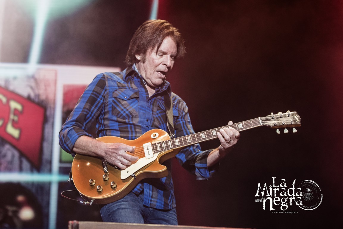 Contó con una espectacular banda respaldándole, pero el escenario sería todo para él, mientras que sus acompañantes irían teniendo momentos de lucimiento individual a lo largo de la descarga. Pero es que Fogerty necesita el escenario para recorrerlo una y mil veces, solo estando en el centro para cantar. En cuanto se desprende del micro podéis estar seguros de que le sobra energía para ir haciendo punteos sin dejar de moverse hacia un lado u otro, de gesticular y de mostrar la sonrisa de quien se encuentra feliz al ver la reacción de sus canciones en el personal.