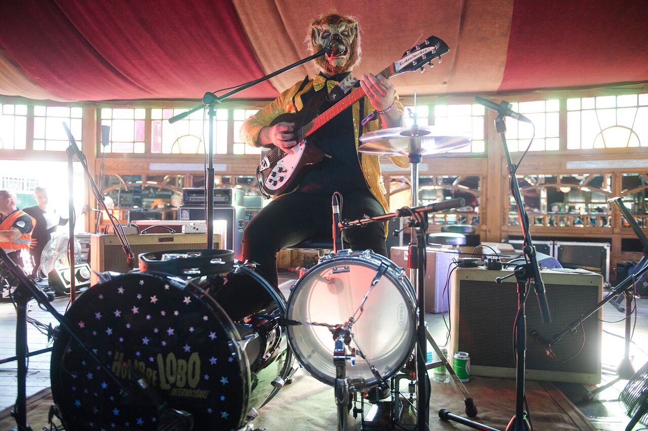 El festival dividía sus actuaciones en tres escenarios, con el añadido del Trashville, donde se vivieron algunas de las actuaciones más curiosas del festival como la de Hombre Lobo Internacional, un hombre solo que toca la batería con los pies a la vez que toca la guitarra con las manos y canta (con la boca). Todo ello con una máscara de lobo aullando rock and roll del más tradicional. Pintoresco cuanto menos. Eso sí, las actuaciones de los tres escenarios principales no me permitirían escaparme mucho por allí, quedándome con ganas de ver alguna de las performances de The Yelling Kitchen Prince, que debía cocinar y ofrecerle el resultado al público en una curiosísima actuación. Por desgracia, en este caso solo puedo hablar de oídas.