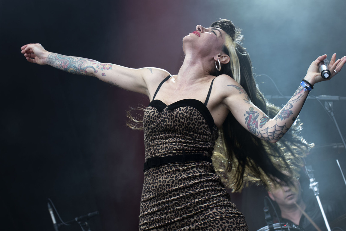 Quise llegar a primera hora para ver con curiosidad a Micky And The Buzz, la actual banda afincada en Bilbao con la vocalista italiana Micky Paiano, de la cual guardo un gran recuerdo de su época en No Relax. Ahora en un estilo más cercano al rockabilly sigue demostrando que es una vocalista que domina muy bien el escenario, sabiendo captar la atención del personal más tempranero de la jornada del viernes con su carisma brillando en el escenario God, el principal del festival.