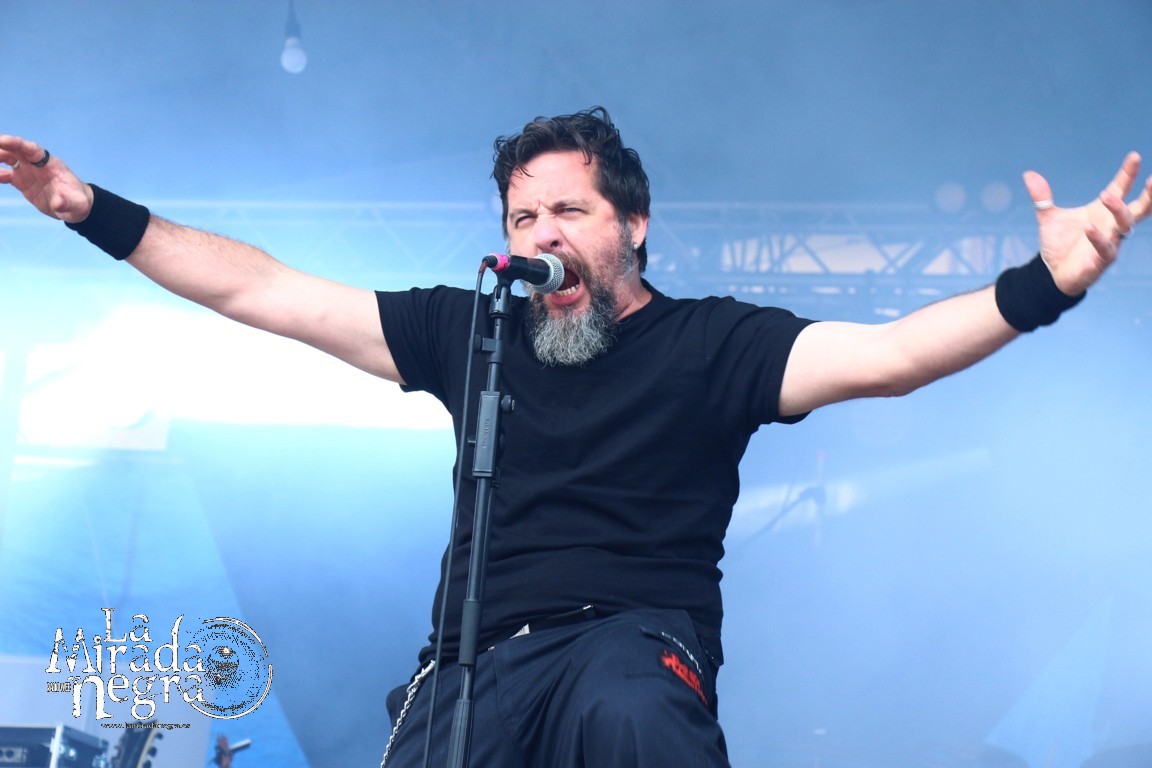 La jornada del sábado se abría de la manera más fuerte, con unos auténticos pioneros del death metal melódico por nuestra tierra que merecen todo el reconocimiento del mundo. Pensé que me había equivocado al anunciar a In Thousand Lakes en el cartel del festival cuando vi a Oscar del Val en el micro, vocalistas de otros veteranos como Dormanth, formación que comparte también con Javi Martinez tras los parches. El caso es que este era el primer concierto que daba el vocalista con su nueva formación, sin que a primera vista se notara ningún tipo de falta de acoplamiento. Al fin y al cabo In Thousnad Lakes guarda bastante afinidad estilística con su otra banda y conoce bien a unos músicos que se mantienen muy bien engrasados con el paso del tiempo, tocando en este repertorio algún tema que nunca habían interpretado en directo. Una banda que sigue defendiendo su segundo disco “Age Of Decay”, editado casi 20 años después de su debut de 1998 “Lifeless Waters And Forgotten Land” y que sigue mirando al futuro con cosas que aportar a su carrera y a quien se preste a tomar nota de cómo se factura este estilo de metal.