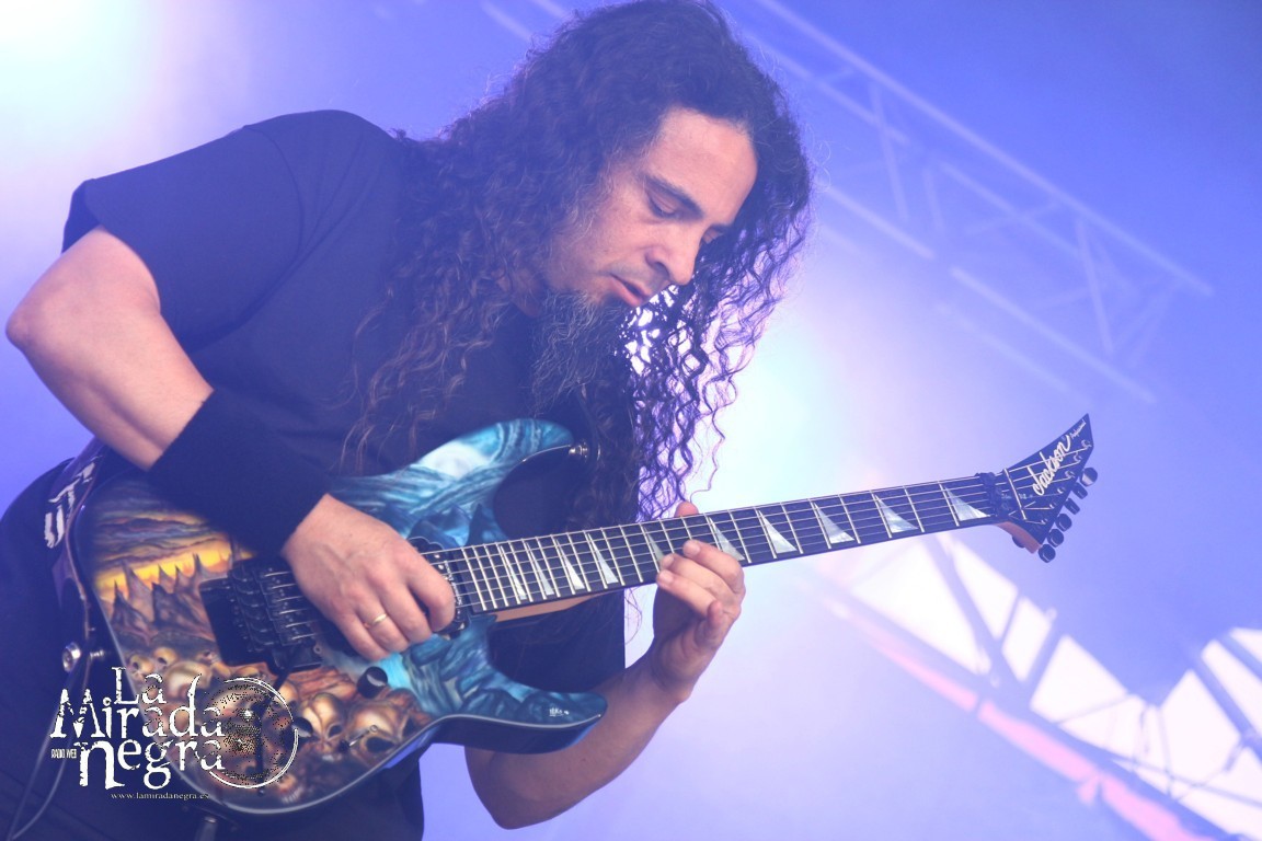 La traca de metal del viernes la abría The Faithless, que siguen presentando su segundo disco “Fighting The Shadows” y que siguen mostrándose en una forma absolutamente insultante. Los fríos ánimos de primera hora de un festival no amilanaron a los gasteizatarras, cuya actuación hay que calificarla de órdago, con un Abel en las voces sorprendiendo a todo aquel que hasta el momento no le conociera, y pienso que cada vez ganando más como frontman, sabiendo conectar con el personal, sin dejar de destacar al combo al completo, con una bestia a la guitarra guitarrera como es Iñaki Nogueira, que es capaz de desdoblarse en riffs y solos con un nivel fuera de serie, con un acompañamiento rítmico de lujo con los veteranos y legendarios Lolín en el bajo y Fer Heras en la batería. Cada vez que se suben a las tablas constatan su categoría como banda.