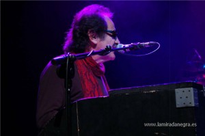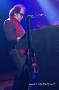 Evidentemente no podían faltar esos temas conocidos por todos, aunque yo eché en falta “Jim Dinamita”, que esta vez se la reservaron. Johnny se mostró muy contento de estar en Bilbao, con comunicación con un público al que no se olvidó de declarar su amor, abandonando de vez en cuando su teclado para acercarse a las primeras filas. Durante la interpretación de “Ginebra Seca” presentó a su banda, habiendo dejado previamente un excelente (de lo mejor de esta noche) “Muévete En La Oscuridad”.