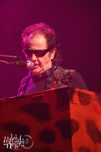 De hecho, si cabe esta fue una actuación mucho más completa en todos los sentidos en comparación al último recuerdo que nos habían dejado en Bilbao. Vimos a la banda muy enchufada, especialmente a un Johnny que dejaba constantemente su teclado, revestido con el color rojo y motas negras en referencia a la portada de piel de leopardo de su nueva obra, para acercarse a las primeras filas a buscar y recibir el calor del público. Gesto habitual en el músico, pero que en esta ocasión si cabe se vio más a menudo.