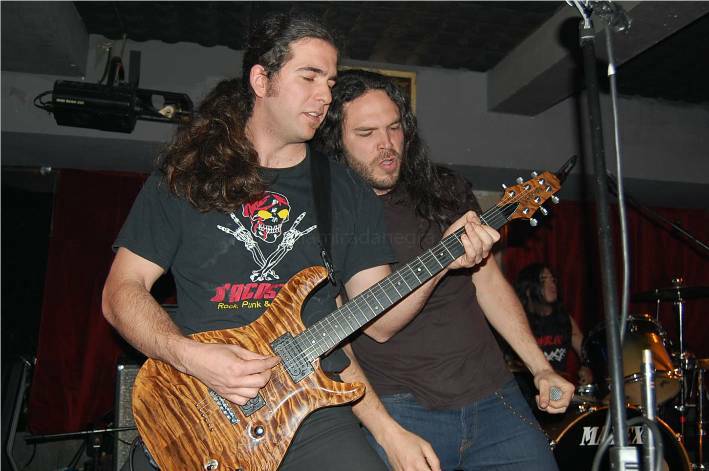 Sin embargo, llegamos para ver el grueso de su descarga, con una propuesta que puede echar abajo cualquier escenario. La consistencia de estas canciones son capaces de llevarla al directo triplicada estos chavales a los que generosamente les gusta repartir decibelios. Tuvieron problemas constantemente con la guitarra, que rompió una cuerda, si no me equivoco en “Down The Highway”, en el cual salieron adelante sin las seis cuerdas, dejando al descubierto la labor envolvente de Eneko con el bajo, remarcando y agrandando el sonido del grupo cuando se desenvuelve en contacto con la guitarra. No perdieron pese a ello el hilo de la actuación, aunque deduzco que habrán tenido conciertos más redondos.