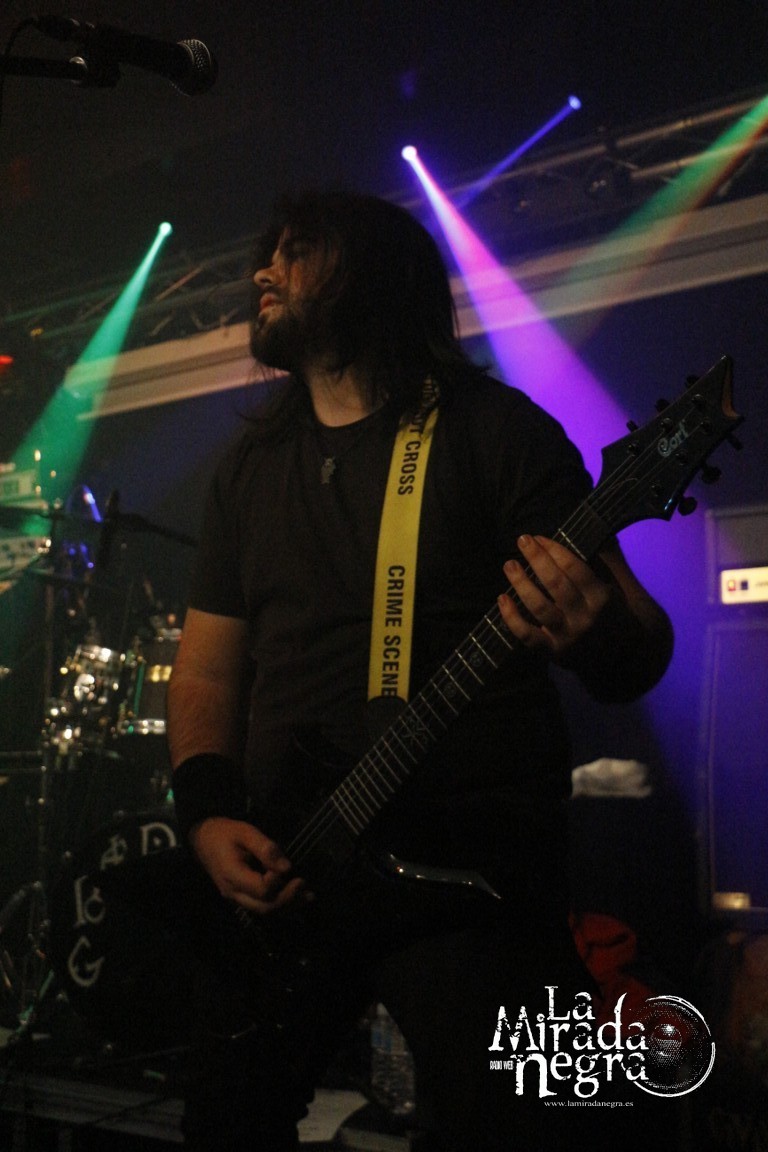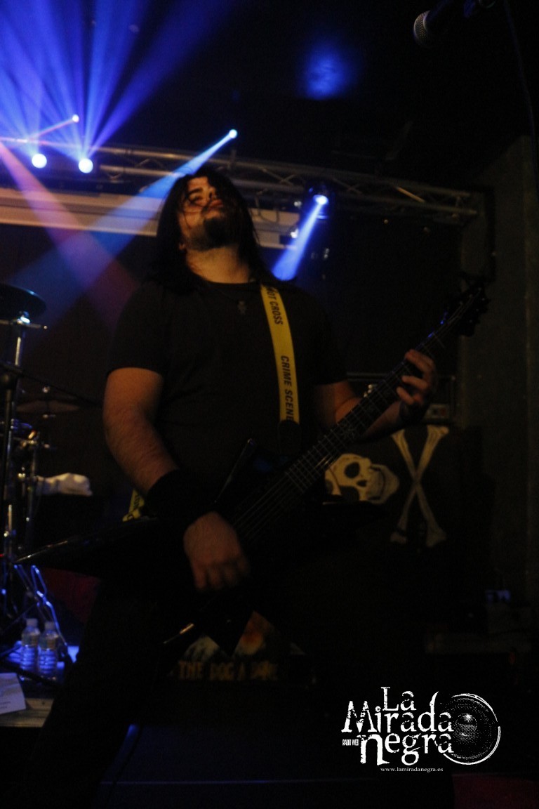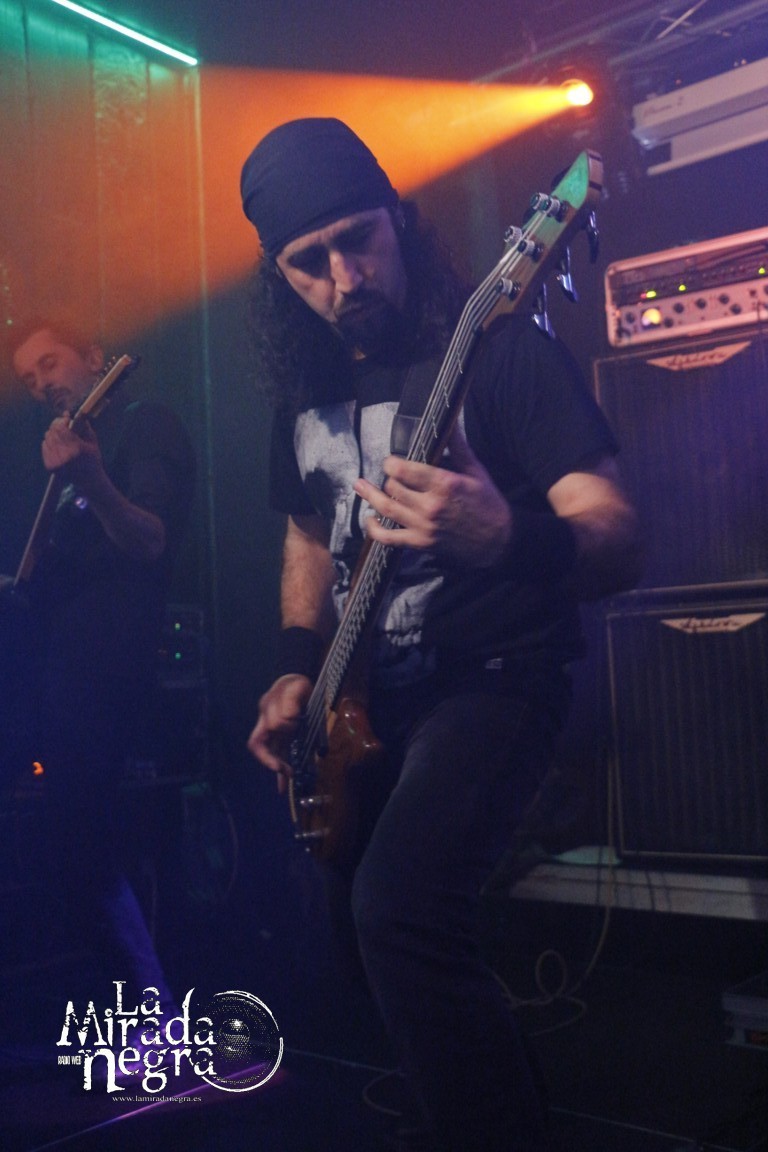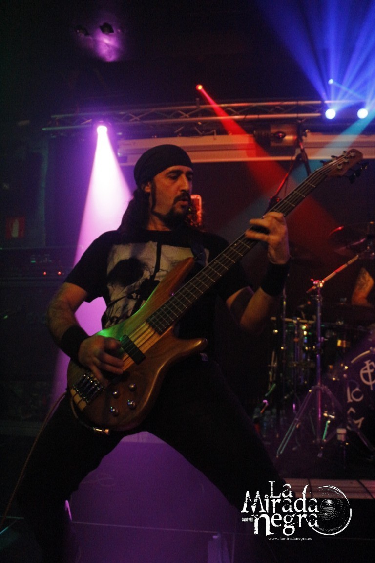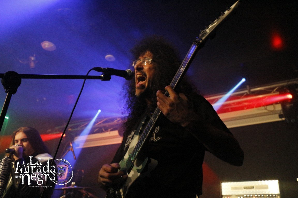 Con “Juicio Final” comenzó la descarga, con un grupo sonando más que decentemente en un recinto tampoco excesivamente alto, con lo que ello conlleva a nivel sonoro. Tal vez yo le hubiera dado un poco más de volumen a las guitarras. Pero salvo esta apreciación pudimos disfrutar del buen hacer de una banda muy bien trabajada en el plano instrumental y vocal. Y es que sin hacer alardes técnicos el grupo sabe lucir en ambas facetas conjuntamente y por separado, mientras que a nivel rítmico encontramos la fuerza y pegada que el estilo necesita.