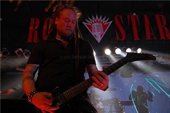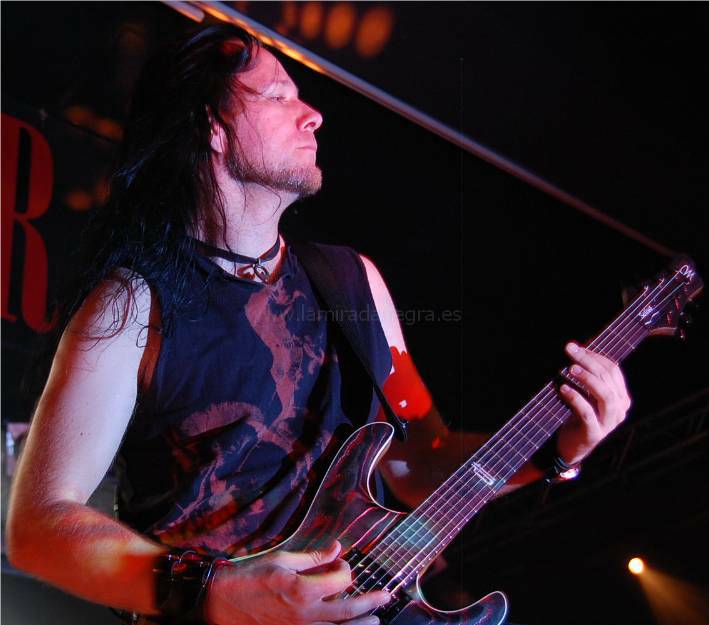 Dark Tranquillity fue la sorpresa para mi, no por quienes son (que ya los conozco desde hace mucho), sino porque no me esperaba que tuvieran tantísimo tirón por estos lares, lo cual es muy grato y se reconoce la labor que han hecho a lo largo de tantos años. Como ya digo, la sala tenía algo más de media entrada y se entregó a la banda desde el primer tema «At the Point of Ignition», cantando y vibrando con cada uno de los temas que componía su extenso setlist con 18 temazos de su larga y fructífera discografía. Los de Gothenborg viendo esta entrega tan completa hicieron lo mismo y nos dieron uno de los mejores conciertos que he vivido a lo largo de este ya casi agonizante 2010. Se les veía pletóricos sobre las tablas y el vocalista Mikael Stanne se afanó en comunicarse lo máximo posible para que ya la comunión entre grupo y público fuera completa. Así ocurrió en temas como «The Fatalist», «Damage Done», «Lost To Apathy», «The Gallery», «One Thought» o «The Wonders At Your Feet», uno de sus temas estrella y uno de los más coreados. En «Iridium» hubo algún problema de sonido porque de repente se medio fue el sonido y la canción se arrastró por el suelo en una colección de ruidos varios y acoples. Menos mal que con «Shadow in Our Blood», temazo que abre su nuevo disco «We Are The Void», todo volvió a su cauce normal y se pudo disfrutar del concierto en toda su plenitud. Comentar que durante este tema se proyectó en la pantalla el videoclip del mismo y la verdad es que, como ocurrió en el concierto de W.A.S.P., iban calcados los tempos del video con el tema en directo, lo cual le dio más vistosidad.