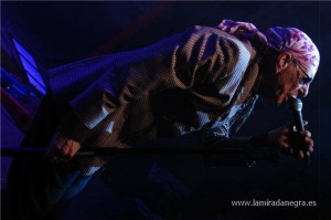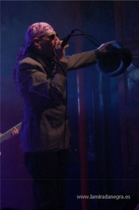 Dentro del espectáculo quedaban momentos como los de “El Lobo Feroz”, con El Drogas portando una máscara de Lobo, poco antes de cambiar una indumentaria que hacía tiempo le iba sobrando dado el calor imperante en una acogedora sala a reventar.  La chistera ya no cubría su cabeza, solo lo hacía el habitual pañuelo que le acompaña desde que ya no luzca su antigua melena. Con una indumentaria netamente ochentera y rockera encaró Enrique la parte final de la descarga, donde hubo temas como “Salvaje Mirar” o un “En La Silla Eléctrica” muy querido por el respetable. Así mismo la versión de “Frío” de Alarma puso a tono las gargantas.