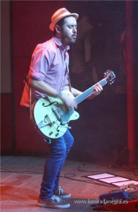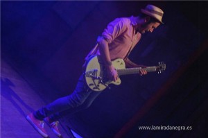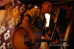 Una vez abiertas las puertas nos encontramos con la sorpresa de que en la misma entrada teníamos a Enrique y a su guitarrista tocando para nosotros en acústico para hacer más amena la espera. Algo que solo pudimos presenciar los primeros en entrar, formándose rápidamente un tapón en la entrada donde se encontraban en la distancia más corta los dos músicos interpretando temas sobre todo del disco acústico “Libros Prestados”. Nos perdimos alguno mientras accedíamos a la sala, pero nos dio tiempo a ver cómo con armónica y guitarra El Drogas se marcaba en el plan más íntimo “Debajo De Aquel Árbol”, “Con Tu Presencia” “Ya No Anochece Igual” y “Todo Lo Enamora”. Está claro que aparte de temas reivindicativos este hombre también sabe dejar este tipo de canciones enternecedoras en un formato que va mucho con su carácter afable.