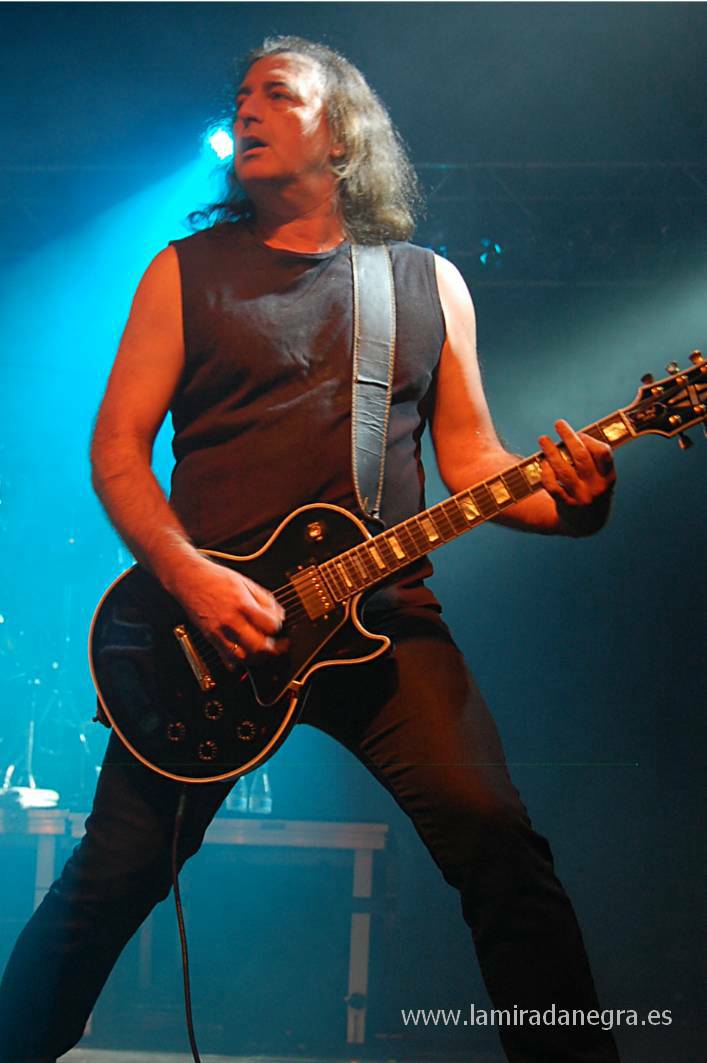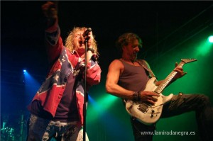 El grupo arrancó con “Tony´s Roulette”, con el público volcado desde el principio, acompañando con fuerza a la banda en “But We Still Rock” para llegar al primero de los cortes del disco homenajeado, “Neven Mind”, continuado por “Just Follow The Rainbow”. El simpático Claus Lessman ya se había ganado el favor del respetable con algún comentario, pero le noté esta noche algo más serio y comedido que hace unos años en la sala Bilborock de Bilbao, última vez que les vi encima de un escenario. Pidió al público que entonaran ese “Hot To Rock”, que repetimos en varias ocasiones antes de comenzar definitivamente con un cañonazo de hard & heavy, Lo enlazaron sin dar tiempo a respirar a “Don´t Touch The Light”. Tras esto el vocalista explicó el significado de “Proud Of My Country”, diciendo que verdaderamente estaban orgullosos de gente como los allí reunidos esta noche. Uno de los temas que nos sacó por un momento de los 80. Tras este, el acústico “Cowboy Rockero” fue uno de los momentos emotivos de la noche, cantada en castellano en la mejor pronunciación que el bueno de Lessman pudo emplear. Momento en el que los dos pilares fundamentales del grupo (Claus Lessman y Hans Ziller) se quedan solos en el escenario, mano a mano.