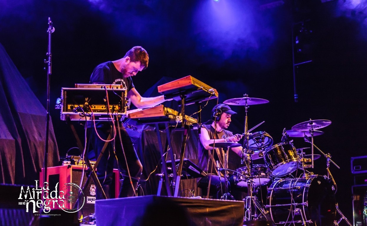 Mucho más sencillos en el plano visual los sorprendentes Zombi que abrieron para los suecos. Un dúo instrumental, sicodélico y ambiental procedente de Estados Unidos que no creo encontrara el contexto adecuado en una velada de metal. Los sonidos electrónicos embriagan todo su estilo, resultando una banda harto complicada para el público del heavy metal. Se puede ser abierto de mente, pero o bien te pilla en el momento adecuado o te tomas algo extra para que su música te transporte, porque lo cierto es que se hizo complicado que el público entrara en su propuesta. Personalmente elegí salir un poco a tomar el fresco antes de que terminaran su actuación. No digo con esto que sean una mala banda, ya que me parecieron buenos músicos cada uno en lo suyo. Pero sin guitarras y con algo tan marciano, antes de una banda que cuenta con canciones bastante más accesibles, lógicamente no llegaron a acaparar toda la atención de los presentes. No creo que fuera su contexto.