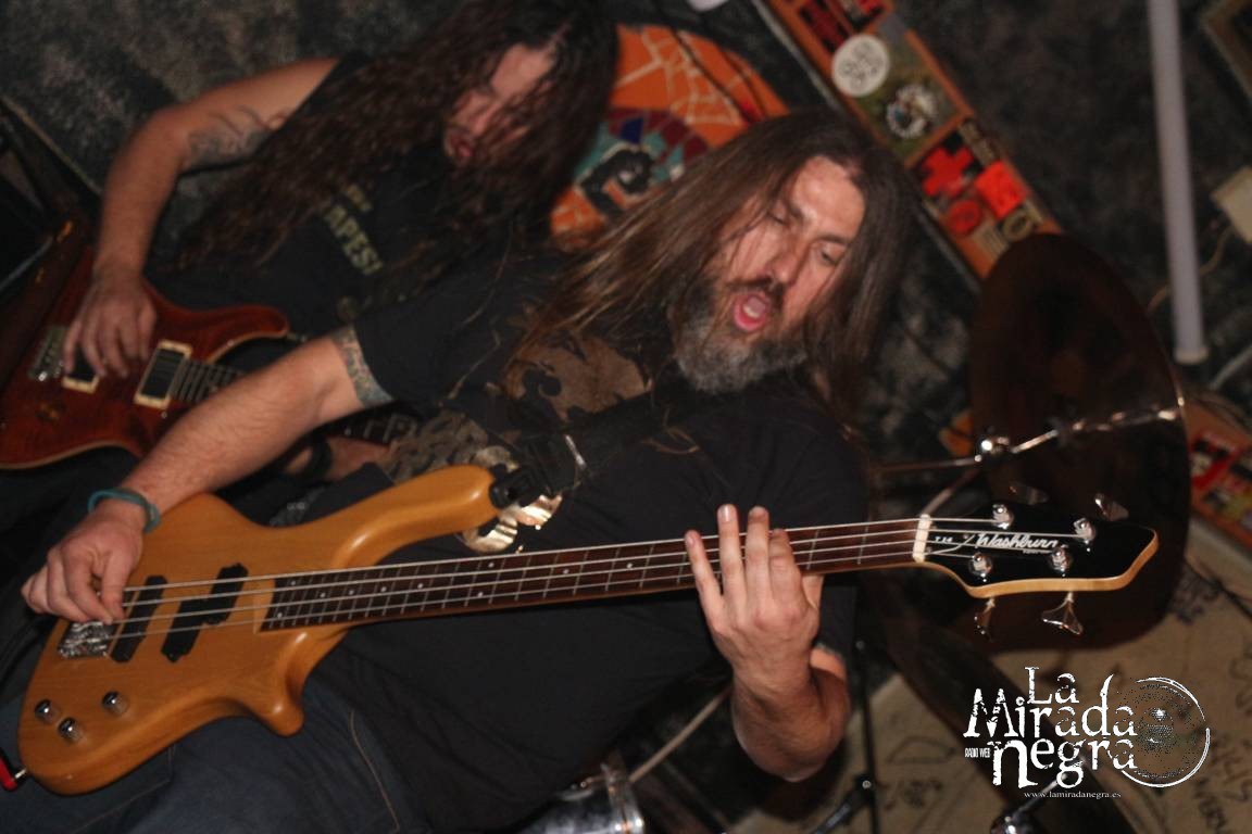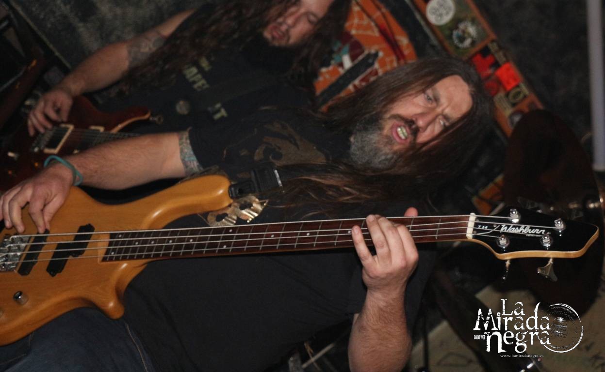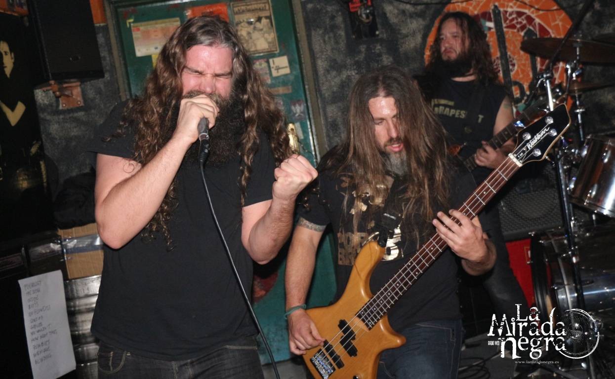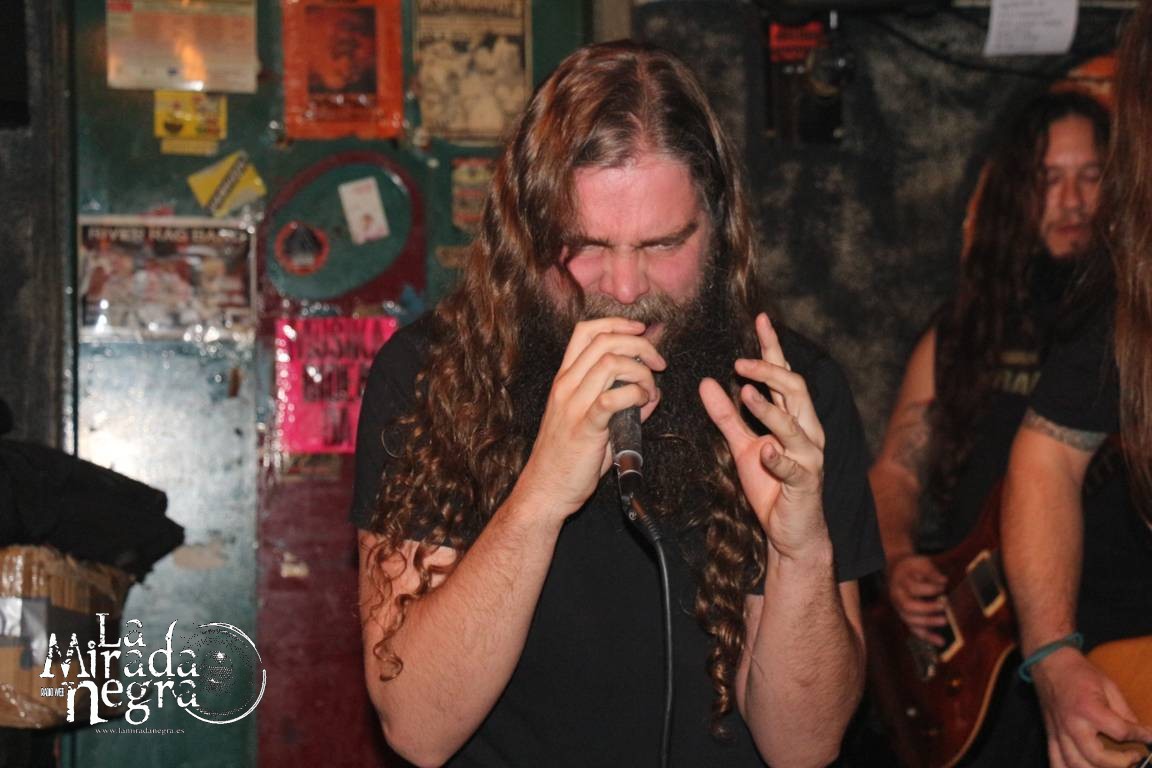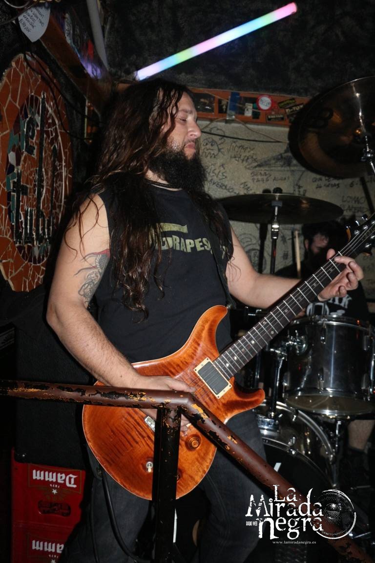 Grapeshot nos aplastó con unos temas potentes a los que no les falta un trato guitarrero no solo perfectamente acoplado a la base rítmica, sino capaz de lucir un trabajo de riffs excelentemente empastado y a la vez libre de encasillamientos, adecuado para la variedad de agresividad y limpia gravedad que Esteban es capaz de brindar desde el micro. El vocalista nos explicó una a una las letras de unas composiciones que, al igual que su música, distan mucho de quedarse en lo superficial. Congratula que una propuesta así, alejada de estereotipos, logre enganchar al público para devolver al grupo lo que se merecía.