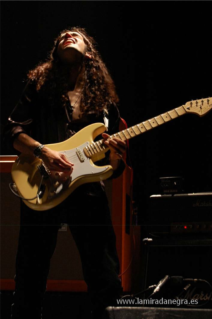 La hora de ver a Robert Rodrigo sobre un escenario después de tiempo sin verle en solitario llegó. Lástima que aún no estuviera en la calle su nuevo plástico, que se espera para diciembre. Habrá que esperar unas semanas que se harán aún más largas tras disfrutar de varios de esos temas que integrarán “Wrath!” en el directo de esta noche. Robert, acompañado por su habitual banda también con Airless, con Paco Martinez a la batería y Miguel Manjón al bajo, dio todo un recital de guitarra y a la vez de buenísimas canciones. Porque la técnica no tiene por qué reñir con el buen gusto. Como en él es habitual bordó un concierto que rozó la perfección, dejando boquiabierto a quien le descubriera esta noche. Es más, aunque le hayas visto repetidas veces no dejas de alucinar con la forma en la que es capaz de tocar esas seis cuerdas.