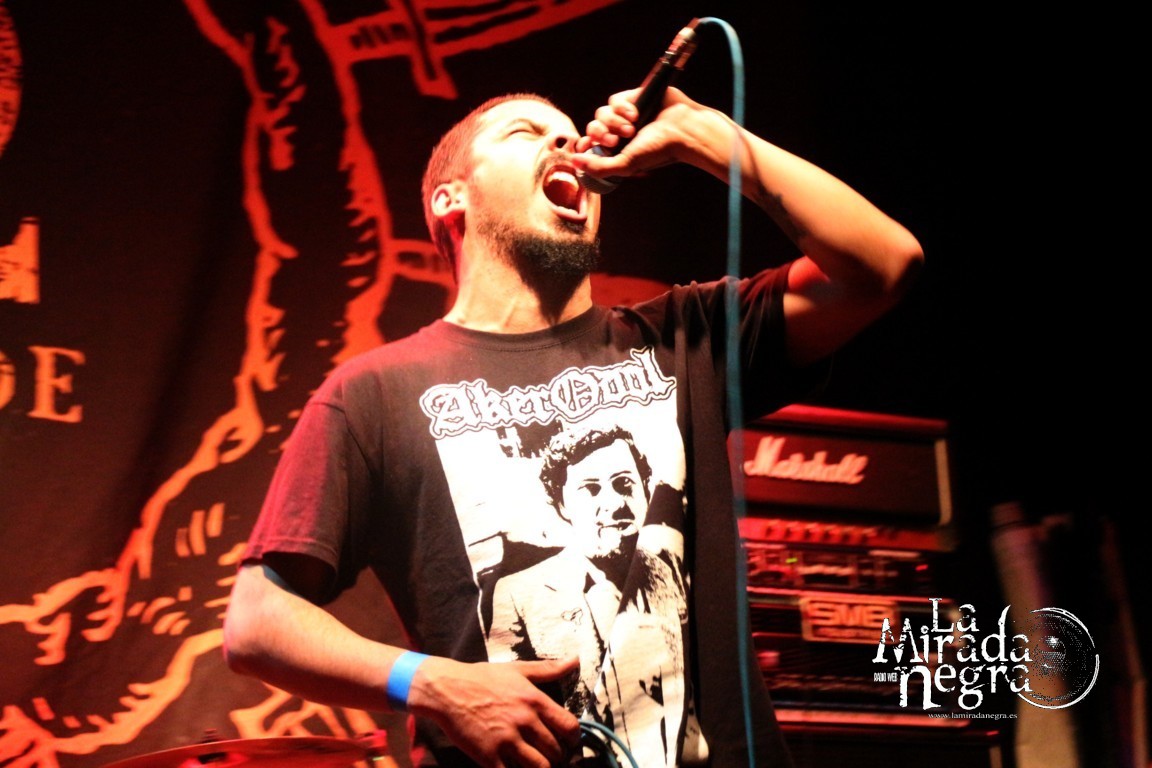 Posteriormente Histolysis continúo con la carnicería. Con Ohiana a la cabeza, una mujer que en nada tiene que envidiar a los registros guturales de cualquier demonio que se ponga por delante. Su propuesta es completamente extrema, y destaca su actitud como frontwoman, excelentemente secundada por una banda capaz de abrumar con un sonido rugoso y fiero. Temas como el que cerró su actuación “Camino Entre Sombras Vivas”, dan buena cuenta de lo que son capaces de hacer, resultando una banda en este estilo más que suculenta, aunque el manjar será quien se ponga ante ellos. Dejaron patente su sed devoradora. Su media hora dio de sí lo suficiente como para demostrar que en este estilo son un grupo de lo más interesante, del que se pueden esperar muy buenas cosas en un futuro inmediato.