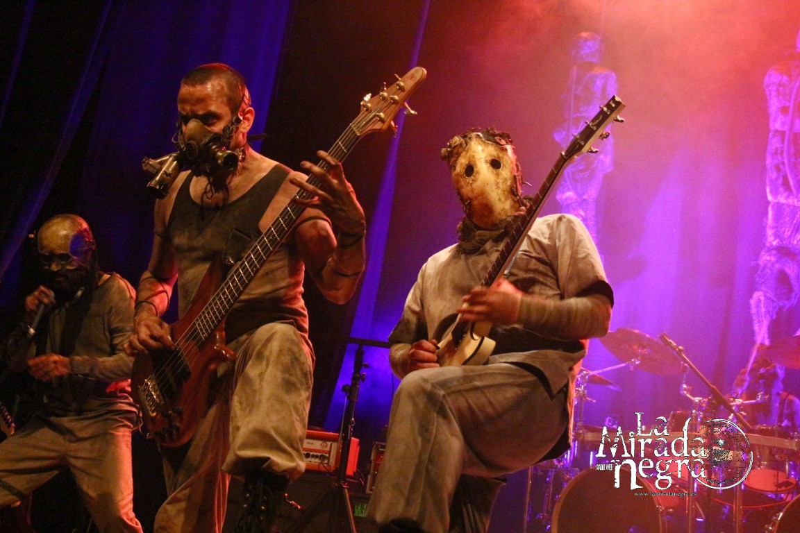 “Epidemic Race” contó con Jonathan de Hex, que se marcó un brutal dueto con Neuros. Me alegra que sigan manteniendo en el repertorio algo de su debut “Neurotic Mental Storm”, donde se sembró toda esta locura a la que no se le debe poner techo. A ese disco pertenece “Fall And Rise”, arrancado con el enmascarado bajista Pcycho tocando las cuerdas con una baqueta. Pero tras ello siguieron desgranando su obra más reciente con temas como “Mother Whispers In My Ear” o “Flesh That Fuels”, culminando con la versión de “Vacuity” de Gojira, diría que endurecida con respecto a la original o tal vez sea solo la sensación del directo.