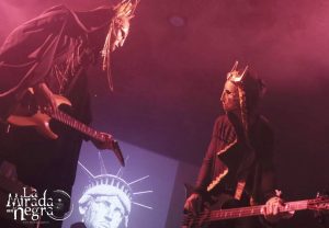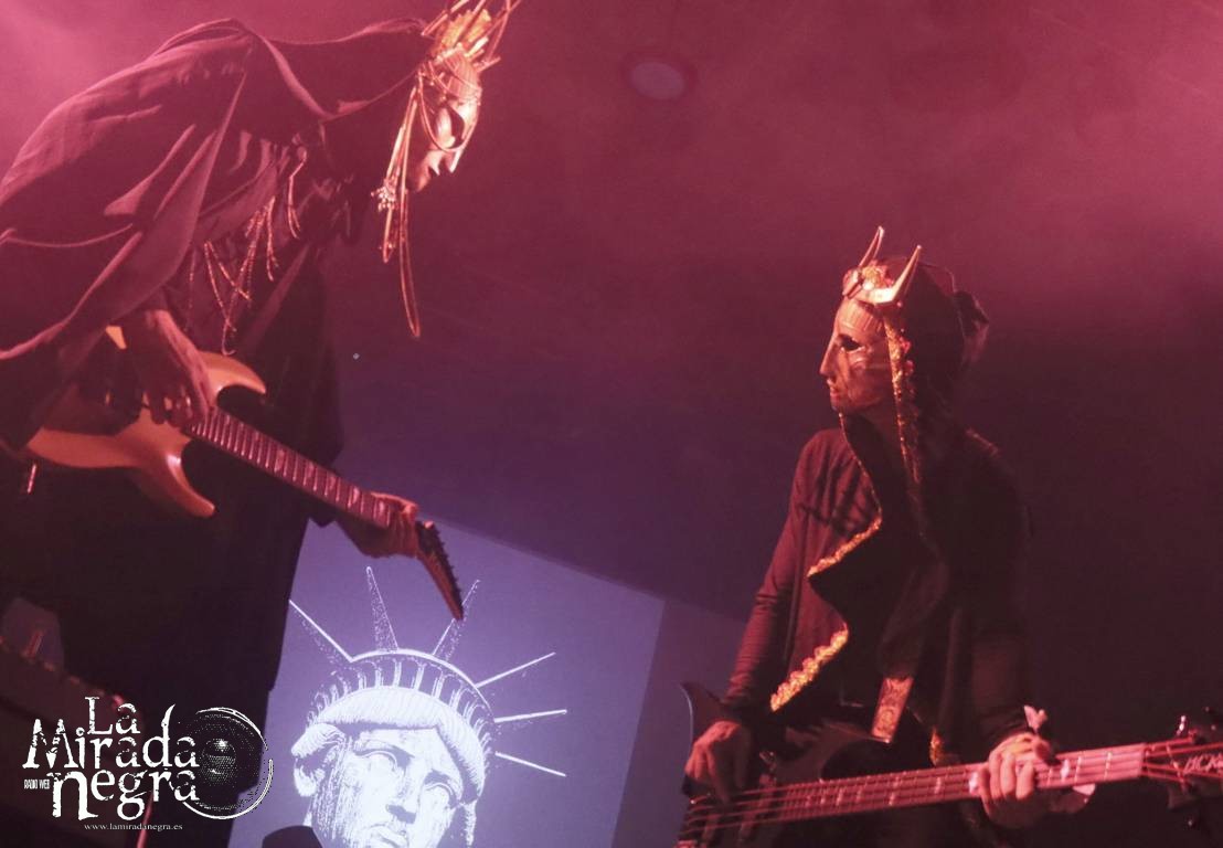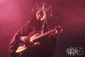 La banda además se curra un gran espectáculo visual, con unos monjes enormes en la parte de atrás del escenario de cuyas capuchas salía humo en varios momentos de la descarga, pero sobre todo con esa interpretación de sus dos vocalistas. Así que el público no perdía atención de lo que se cocía en escena con “Spaghetti Forever”, “Nervus Waltz” o “Blastbeat Falafel”, que cerraron un tramo de arranque con el que captaron toda nuestra atención antes de adentrarse un paso más en esta liturgia.