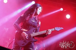 Frozen Crown abrieron la velada a las 18:30, hora tempranera que les privó seguramente de haber contado con algún seguidor más. Pese a ello no estuvo mal el número de público ante el que expusieron su power metal, que en esta ocasión me dejó una sensación un tanto menos completa que la que me llevé al verles en Vitoria en 2019 como cabezas de cartel. La ausencia de Thalìa Bellezecca, ahora en Primal Fear y a la que disfrutamos en aquella ocasión, se dejó notar, aunque en la actualidad cuentan en sus filas con 3 guitarristas, habiendo incorporado a Fabbiola “Sheena” Bellomo y Alessia Lanzone, aunque el mayor peso lo sigue llevando Federico Mondelli en este aspecto, también aportando voces junto a la sonriente Giada Etro.