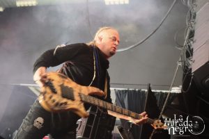 La banda italiana tiene recién editado su quinto disco en apenas seis años. Tan reciente que aun parecen reservarse la apuesta por él para un futuro, tirando de temas del pasado de la banda para amenizar la espera antes del plato fuerte de la noche en una actuación en la que no me acabaron de convencer con un sonido excesivamente envuelto en samplers y orquestaciones disparadas que apenas permitían apreciar el potencial que te puede dar contar con tres guitarras. Tampoco contaron con mucho tiempo, con lo que nos lo tomamos como una puesta de largo para una futura venida presentando ya su nueva obra, si bien no dejaron de conectar con un público que había venido predispuesto a mostrar su apoyo a las bandas y que coreó el final “I Am The Tyrant” para agrado de los músicos.