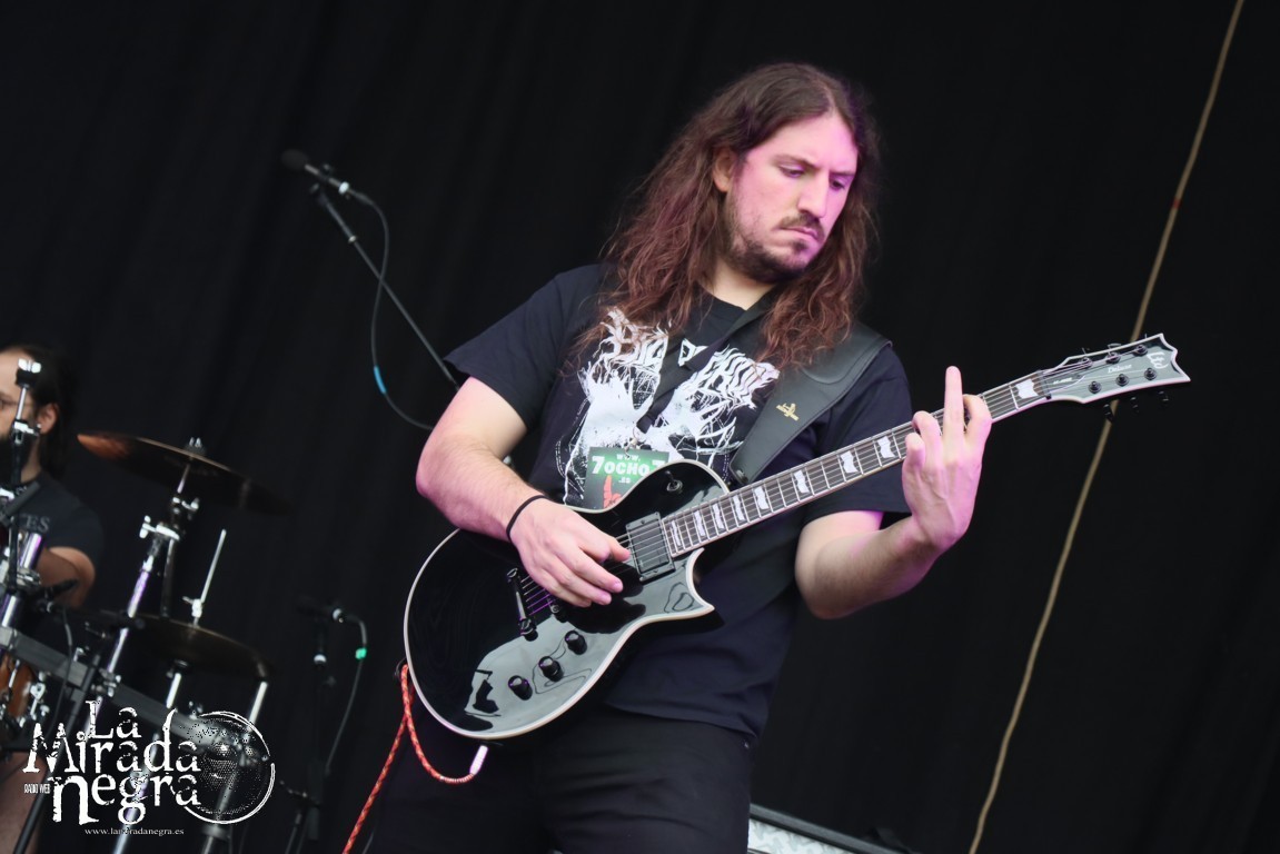 Ya con algo de retraso Elbereth abrirían la tarde con un cielo encapotado que al final de su descarga acabaría por degenerar en una lluvia persistente. Por fortuna les respetó buena parte de una actuación en la que los guipuzcoanos defenderían su largo trayecto, con 4 discos notables editados.