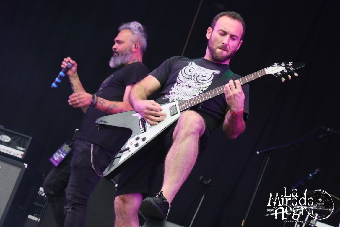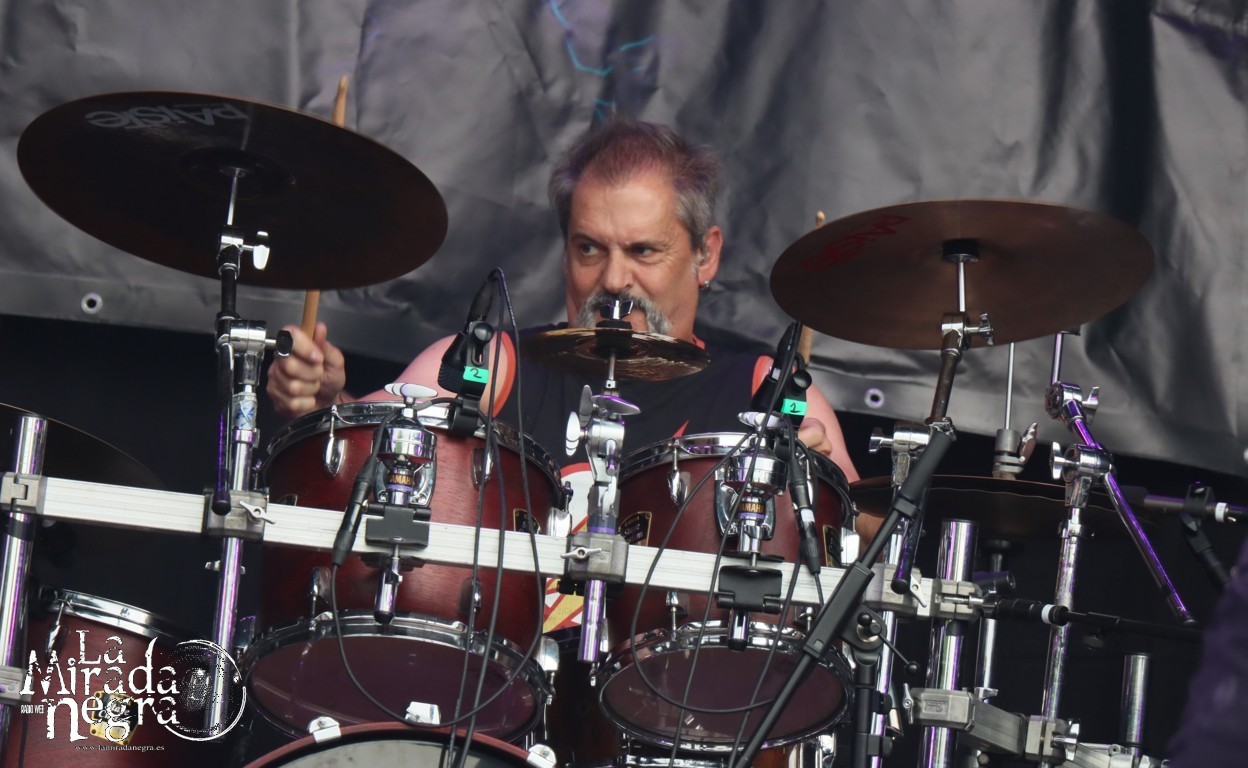Hoy no sería un concierto tan extenso, pero especiales yo creo que son todos los que les he visto. El grupo siempre crea una expectación nueva cuando se sube a un escenario. Les tocó lidiar ya con un público algo cansado tras 5 bandas anteriores. Y bien que lo sabía Carlos Escudero, que supo ganarse a todos una vez más con su carisma y actitud tan particular, aunque pareciera que aquello comenzara un poco frio con “Death To The Wizard”, pero el sonido atronador del grupo y un vocalista cada vez más en su salsa harían que al final aquello fuera la fiesta de heavy metal que siempre, sin excepción, es un concierto de estos titanes del estilo.