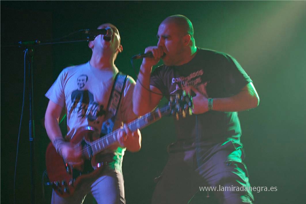 MCD salieron al escenario tras la intro con la música de NO-DO para arremeter encapuchados y con cascos militares con “Terrorista”. Un comienzo más que prometedor antes de que apareciera Rokan. Con él en el escenario vivimos los mejores momentos de la descarga, especialmente en esta primera parte y en la recta final de bises. La gente comenzaba sin apenas tiempo para calentar a disfrutar de lo lindo con temas como “Puta Cerda”, “Violencia Macarra”, “Ruido De Sables”, “Pánico En Las Calles”, “Bilbao, Mierda, Rock and Roll”, “35 Millones De Borregos”, “No Hay Libertad De Expresión”, “Squatters” o “Popatik Hartzera”. Se habían descargado casi entero en directo aquel mítico disco sin respiro, un tema tras otro, con grandes momentos que estaban haciendo de aquello una gran actuación.