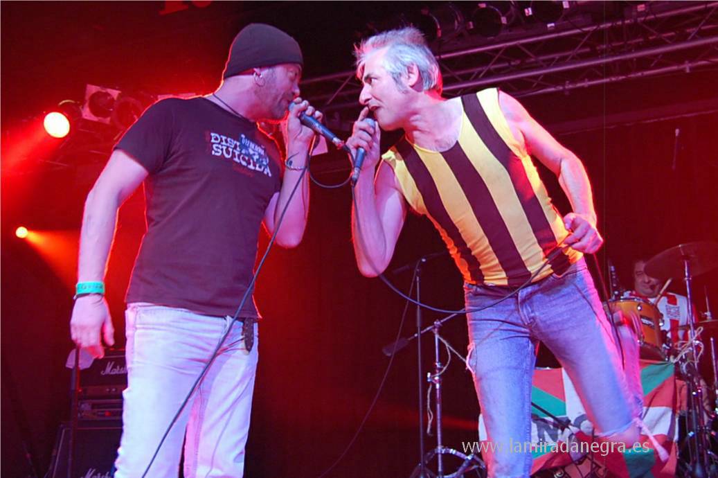 Y eso que el sonido de los micros no fue del todo perfecto. A Rokan le escuchábamos más bajo que a Koldo, pero sin embargo la actitud del primero en escena era garantía de meterse al público en el bolsillo. Destacó en este pequeño paseo por el desierto el oasis de “Violencia Sin Cuartel”, dejando de nuevo el veterano vocalista de la banda al cuarteto que actualmente tira de este carro. Estos se marcaron “Sucio Amor”, entrando en otra fase de menor intensidad, aunque con letras cargadas de intención como la de “Asesinado Por La TV”, con un Joakin a la guitarra que desarrolló un excelente papel. También tuvimos letras tan apropiadas para estas fechas como “Papa Noel”, llegando a la recta final con “Asesino A Sueldo” y rematando con el esperado himno del “Athletic” antes de los bises.
