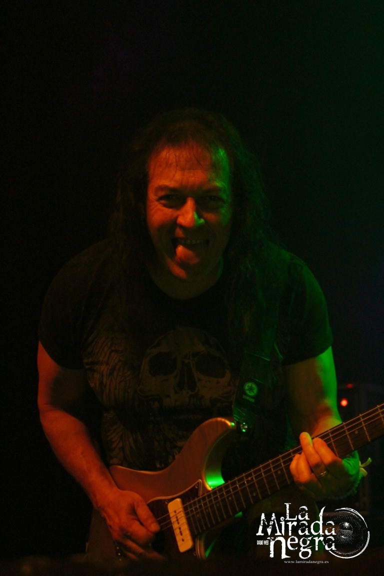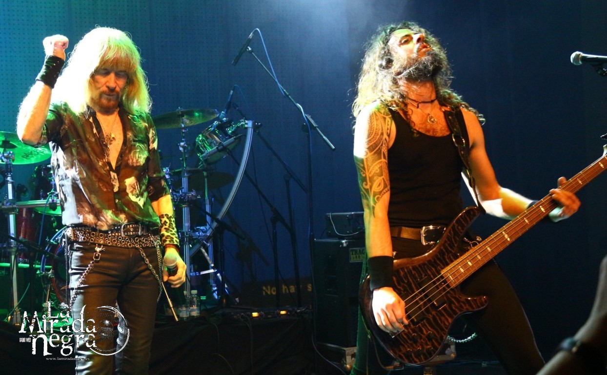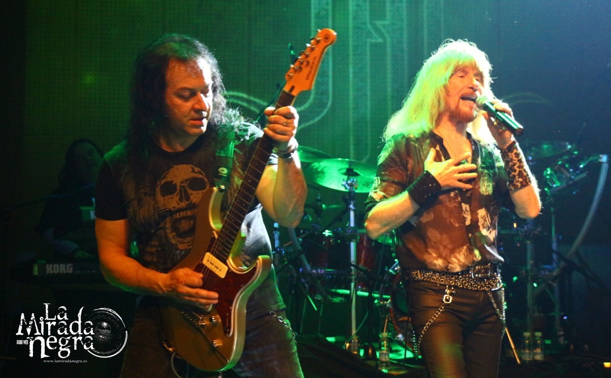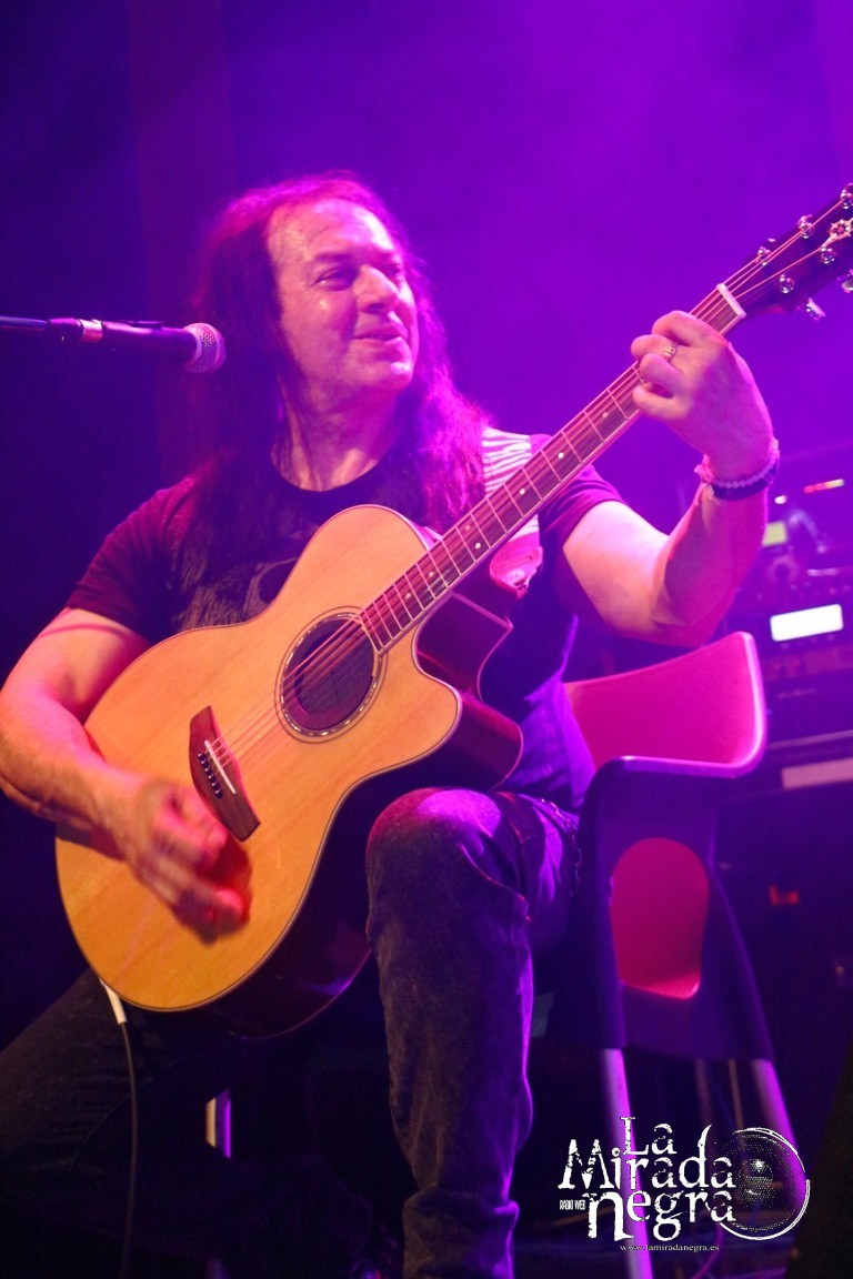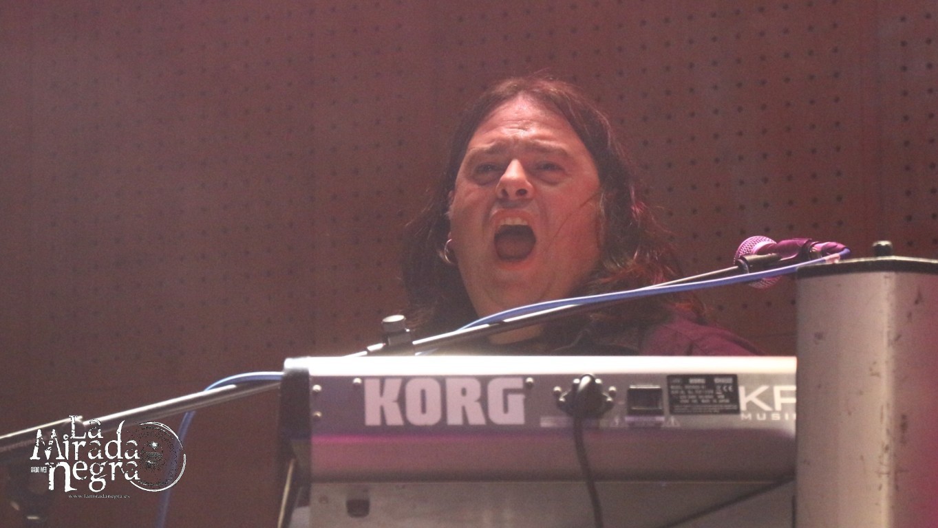 En ese primer tramo las palabras más repetidas por parte de Manuel Martinez fueron muchas gracias. No una sino varias veces al terminar cada tema. El público respondió ante la presentación de estas nuevas canciones, entre las que podemos destacar ese single de claro tinte arábigo “Juegos A Media Luz” o los primeros y directos, de grandes letras y excelentes estribillos “Aprendimos A vivir” y “Niños De Cristal”. Pero si he de elegir uno, ese sería “Un Grito De Amor”, con mucho gancho para los conciertos sin ser un tema facilón. Paco Ventura, aparte de seguir tocando la guitarra como los ángeles, se había percatado de cómo una chavalilla en primera fila, acompañada de su padre, no había dejado de cantar ni una sola de las letras de sus canciones, así que la animó a subir al escenario para cederle su micro contribuyendo a los coros de “Grita”. Es una de las personas que jamás olvidará esta noche, contando además con estos buenos detalles por parte un Paco Ventura que no duda en bajar a las escaleras a marcarse un solo ante nuestras narices si así se le requiere. Al final se marcan un detalle enlazando con el estribillo de “La Fiesta Pagana” de Mago de Oz, que si bien personalmente no me resulta excesivamente llamativo, a muchos de los presentes les puso a saltar irremisiblemente