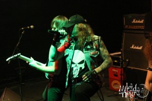 Solo pude ver una parte de la actuación de la banda Gasteiztarra que, entre otras cosas, tiraron de versiones como “The Trooper” de los Maiden o “Blackout” de Scorpions para ir calentando la cosa. Pero ellos también tienen un disco llamado “Nightmares” del que entregaron temas como “Shadows In The Srorm” o “Midnight Rider”. Aprovecharon lo que pudieron su papel de toma de contacto con la jornada, sin poder quitarse una cierta tensión que les atenazó ante un público más cercano a la barra que al escenario.