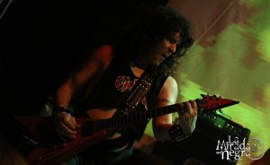 Para mí Eveth eran un grupo espacialmente interesante. Con su primer disco ya visitaron Euskal Herria, concretamente estuvieron en el Cha Cha de Sestao junto a The Name y me los perdí pese a que lo que pude escuchar de aquel “La Condena Del Tiempo” me encantó. Ahora apuestan por un heavy metal más tradicional en su nuevo “El Legado De Los Sueños”, obra nuevamente recomendable al máximo. De este fueron la mayoría de los temas de su directo, ejecutados en vivo con la misma pulcritud con la que los escuchamos en estudio. La banda posee una gran calidad individual en cada una de sus cuatro piezas. Como suele ser habitual especialmente destacados los papeles de guitarra solista y voz. David Sapometal es un genial guitarrista y, aunque en sus solos yo sí eché de menos algo que arropara por detrás más a las composiciones, se mostró muy diestro en sus riffs y solos. Su tocayo David Dalmau a la voz alucinante. He visto a muchas bandas en este estilo que ellos proponen a los que les mata la voz pese a su calidad, pero en este caso poseen el elemento indicado para entonar esas melodías con fuerza y a la vez limpieza.
