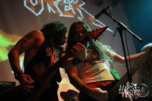 Xina aparece en el escenario y nos presenta ese nuevo “Culpable” con una frase que lo dice todo: somos culpables de amar esto. No ponen límite a su pasión por el “Heavy Metal”, como demuestra precisamente este tema que denomina a la música que nos unió esta noche en la sala Tunk de Irún. No se reservaron a la hora de ofrecernos piezas de ese nuevo disco, de los cuales el siguiente “Nunca Lo Fuiste” fue otro ejemplo. Claro que su anterior “Burlando A La Muerte” no conviene olvidarlo, ya que nos ha dejado algunos temas que van a resonar por mucho tiempo entre los que ya se han hecho seguidores de la banda. Uno de ellos es “Es La Hora De Actuar”, aunque si hay un tema que resulta ya todo un himno ese es “Rebeldes De Acero”. Veremos cómo se asientan los nuevos temas de su recién editada obra “Culpable” y como asimilan Oker este tirón que en la actualidad les hace ser una de las bandas nóveles destacadas del panorama metalero, ganándose una buena posición para continuar. De hecho, por algo la organización entendió que su nombre debía aparecer como destacado en este cartel, justo antes de los grandes del día.