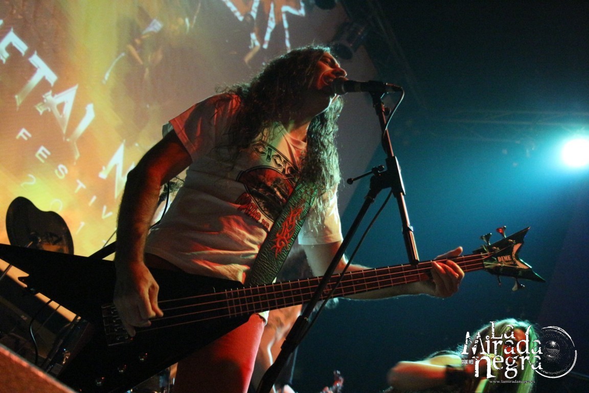 Mandrágora Negra continuaban con el heavy metal de tinte melódico. Jugaban en casa, era fin de su gira presentación de su debut “Sueños De Realidad” y se dieron un pequeño baño de masas con ciertas guindas especiales. Una de ellas fue comenzar la descarga tras mostrar en la gran pantalla de fondo de escenario su video de “El Tamborilero” a un mes de las Navidades. Pero el regalo venía con su actuación en forma de nuevas canciones que ya se pueden escuchar en la tercera edición del recopilatorio “Metal Norte”, puesto a la venta durante el festival. Estos fueron “19 de Septiembre” y “Luna”, que desde ya aseguro que no van a decepcionar a los que ya degustaran su primera obra.