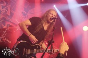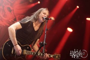 “Un Viaje Épico” abrió la descarga de heavy metal, presentando ese nuevo disco antes de irse ya con “Rumbo A Las Estrellas”, entrando en el concierto de manera progresiva antes de pisar el acelerador más a fondo. A ello contribuyó un “Por El Valle De Las Sombras” cuyo estribillo ya ha calado entre los seguidores para regocijo de un Ángel San Juan al que se le veía satisfecho con la manera en la que el publico cantaba un tema de la época más reciente de la banda que encaja muy bien en el repertorio. Es verdad que luego “Indomable” subió algunos grados la temperatura del público. Y es que el tiempo da a los clásicos ese plus que enchufa más a los seguidores longevos.
