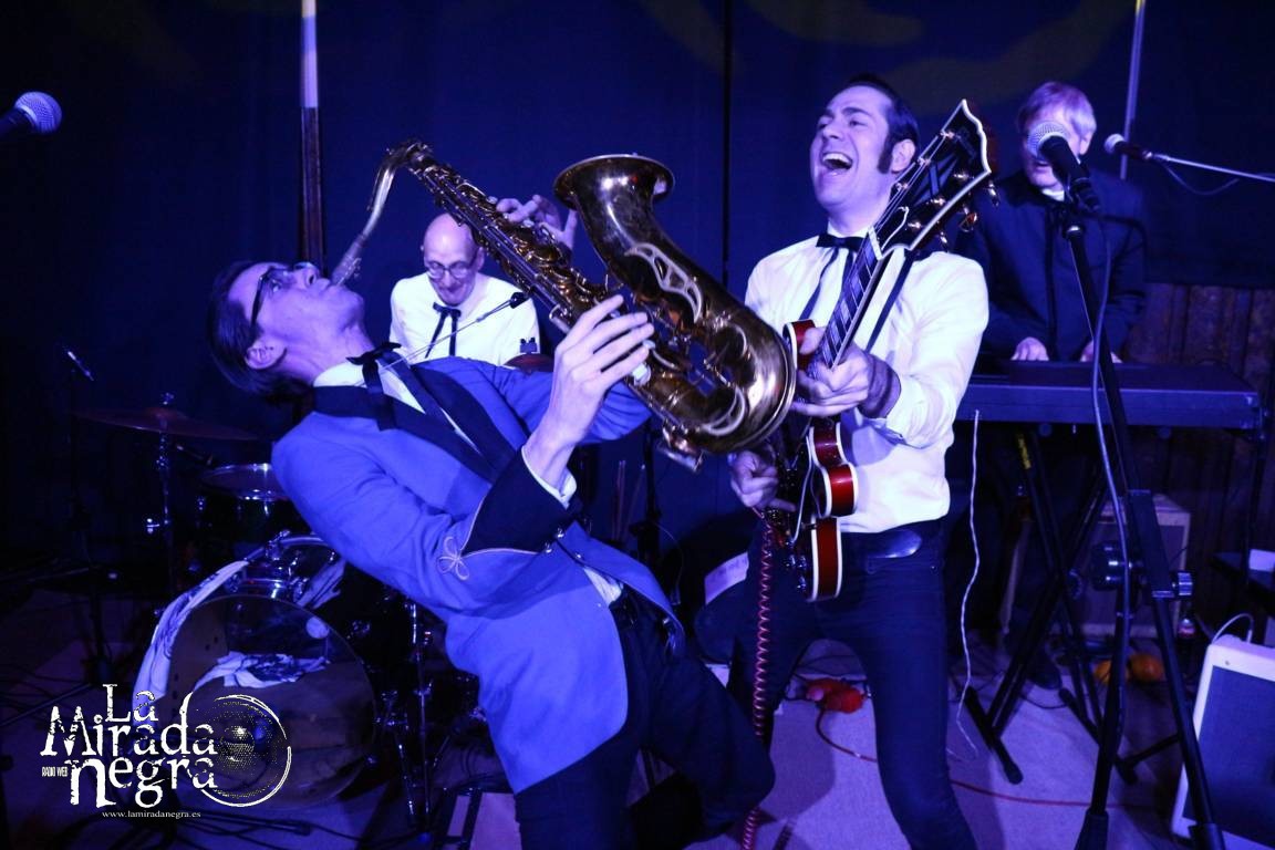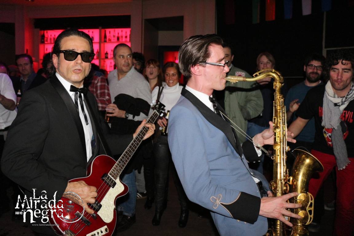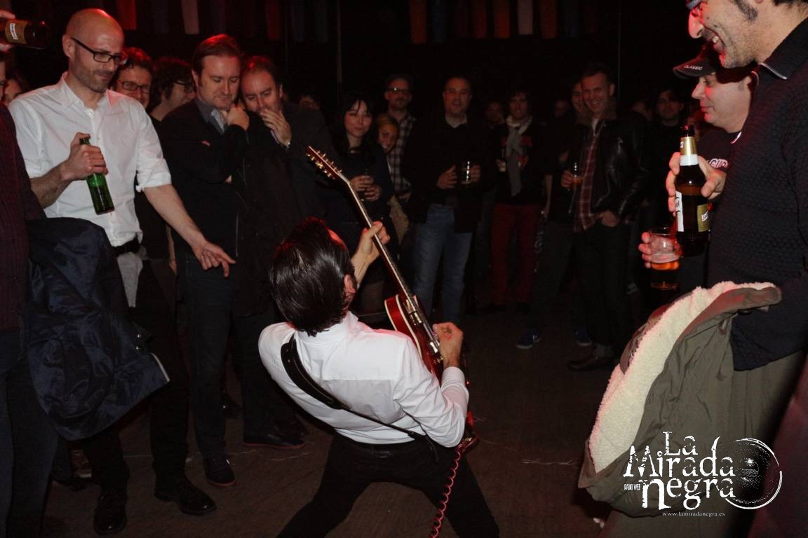 No quedaba duda que su fiesta había convencido, y como suele ser habitual, cuando una fiesta gusta se quiere más. Con lo que ante la insistencia del respetable debieron regresar en un par de ocasiones, o más bien permanecer en el escenario, ya que no les dejaron salir de él. Un poco a juego con su entrada de ¡one chicken, two chicken, three chicken…! al final fueron hasta cuatro temas extra los que brindaron a un público que seguía con ganas de mover el esqueleto, así que pese a haber saludado y a que había que terminar de manera tempranera, ya que a las 21:30 había espectáculo en la sala grande, la banda generosamente no se reservó nada y contagió a todos esa sonrisa de aire seguro. Saben que el rock & roll hecho con esta elegancia y pulcritud, unido a un espectáculo curioso y mucha diversión, es garantía de satisfacción.