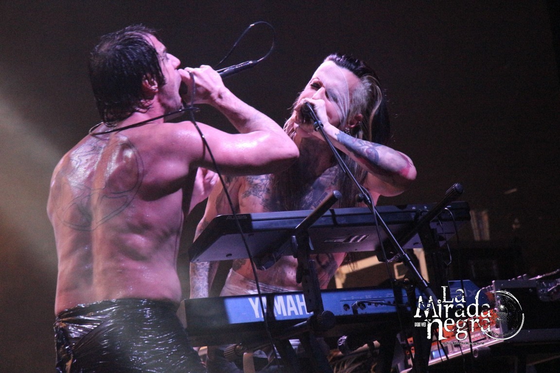 De hecho, solo había que ver la indumentaria de sus miembros para que la imagen nos recordara a las bandas que también han sido para ellos una influencia a nivel sonoro. Por ejemplo, el teclista parecía emular a Marilyn Manson, su guitarrista con esa máscara nos podía recordar a Slipknot y el cantante, músculos incluido y con el torso desnudo desde el inicio, nos trae inmediatamente a la cabeza a Till Lindemann de Rammstein, aunque con una indumentaria que parecía diseñada a base de bolsas de basura. El batería era el único que mostraba una imagen estándar y, curiosamente, carecían de bajista.