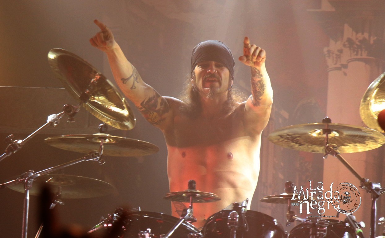 Los samplers son en su caso una base muy importante de su sonido, mezclando los sonidos de pista de baile con las bases metaleras. Así lo vive el vocalista Rui Sidónio, que necesita espacio para marcarse sus bailes a medio camino entre la visceralidad metalera y el ambiente de discoteca. De hecho, el escenario se le queda tan pequeño que la mayor parte del tiempo lo pasaría entre el respetable, con algún incondicional que se convirtió en coprotagonista en muchos momentos, mientras que el resto de los presentes disfrutaron de la fiesta montada por la banda, cuyo estilo podrá gustar más o menos, pero no se les puede negar el juego que dan en directo. Además su actuación contó en uno de los temas con la colaboración de Fernando Ribeiro de Moonspell, que se marcó un gran dueto con Rui Sidónio, anticipando así su presencia en el escenario. No le faltaron alicientes a la descarga de los portugueses para que la gente saliera satisfecha del espectáculo desplegado en vivo.