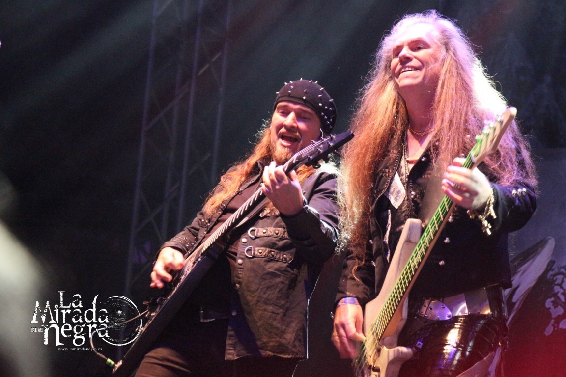 “El Ángel Caído” dio paso al himno “Xana”, presentado con el vocalista dando entrada al estribillo para deleite de los seguidores de la banda, que los había entre la mayoría que había sido atraído por la presencia de los cabezas de cartel. “Corazón Negro” fue un cañonazo partido para unos duelos de guitarra entre Rionda y Salán, con participación del público, para retomar nuevamente la fuerza antes de buscar el contraste con “Delirios De Grandeza”, probablemente el tema más asequible, pero no menos recordado, añorado y querido por sus seguidores.
